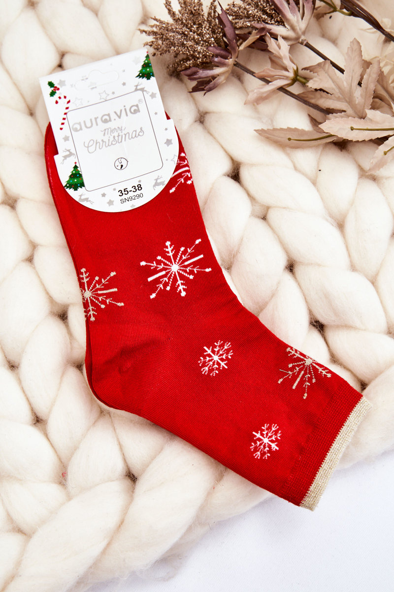 Christmas women's ankle socks are made mainly of cotton fabric. They have decorative Christmas motifs. Socks are also great as an addition to a gift for a loved one! Convenient and comfortable during use. They have a delicate, elastic welt with a shiny thread.