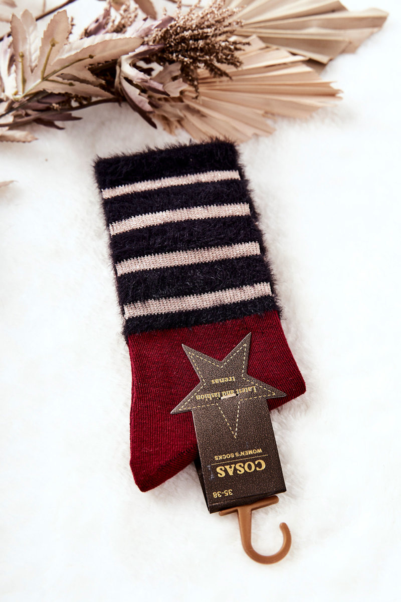 Soft and warm women's socks have delicate fur in the upper part, which is decorated with several stripes in a different colour. They are perfect for colder days. Available in different colours, so check out our other offers too!