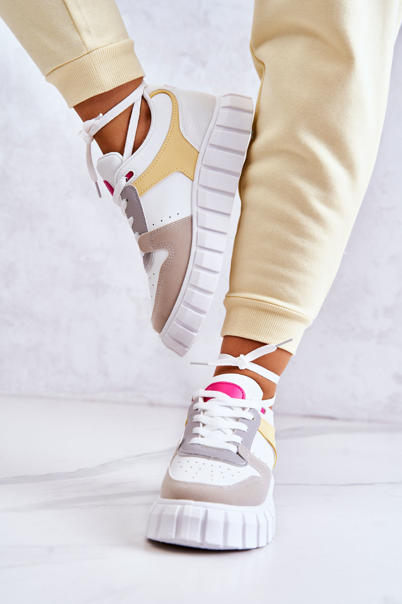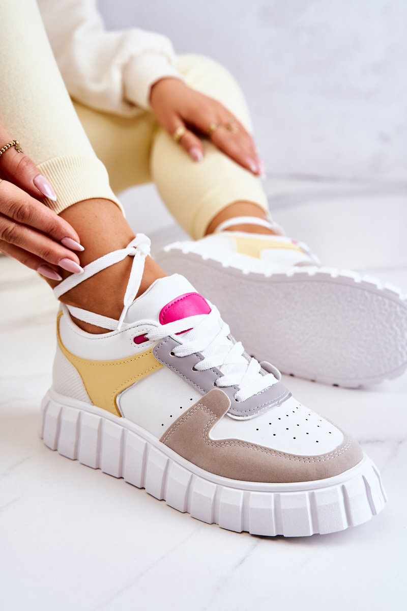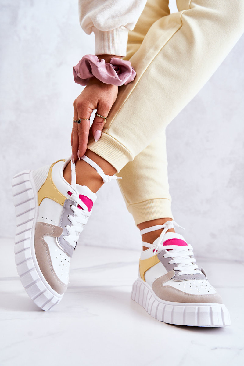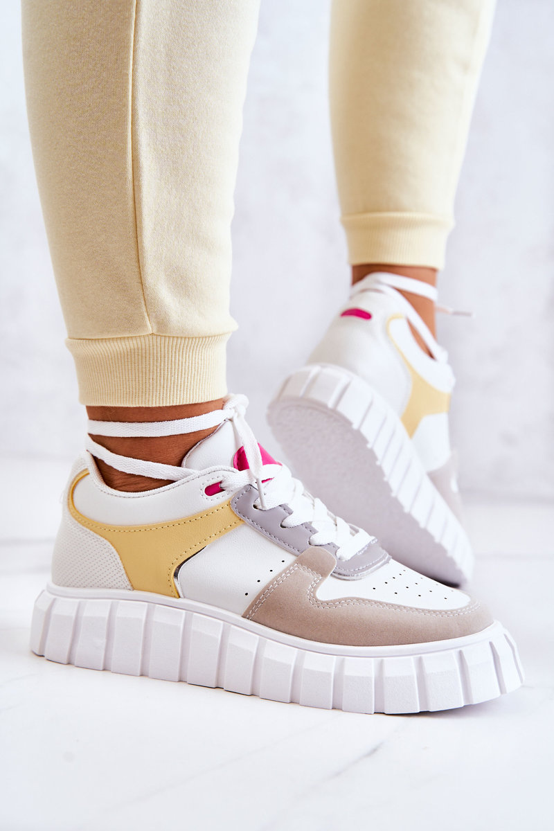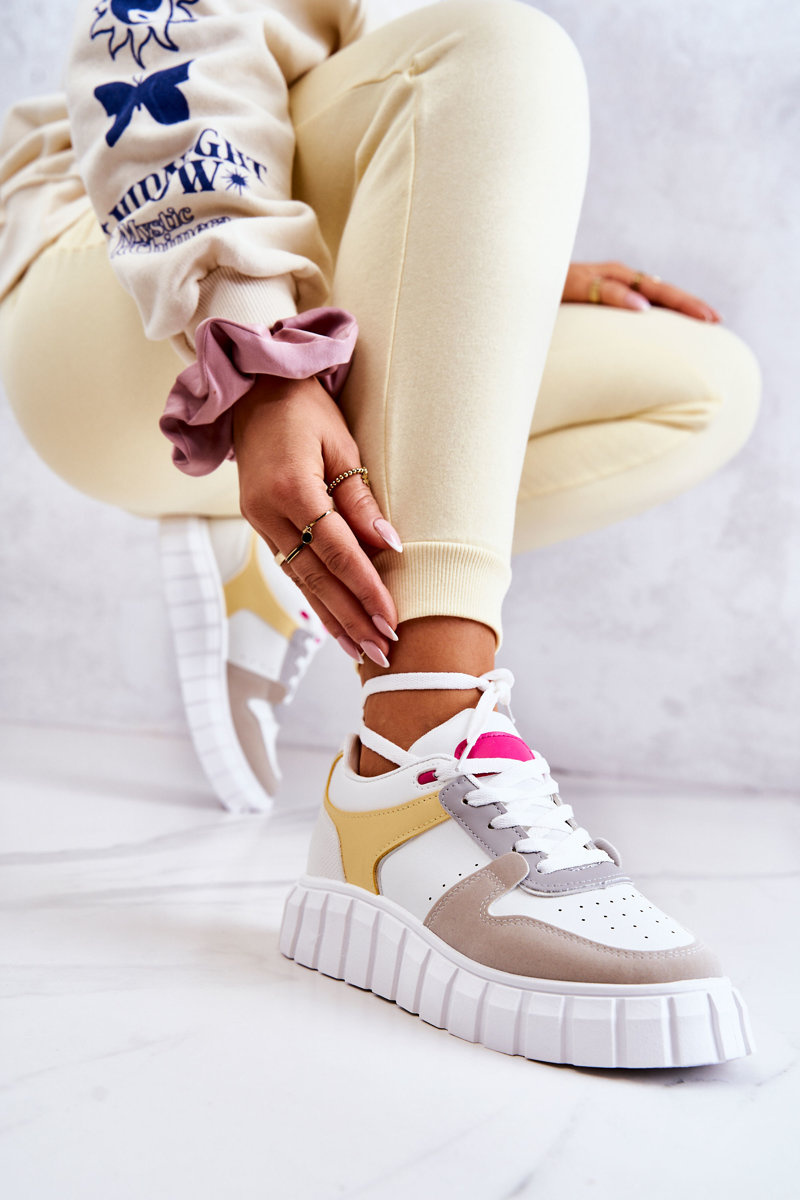 Must-have sports shoes! Made of a combination of high-quality eco leather and eco suede. They are mounted on a massive platform with grooves on the sides. Slight perforations on the front and sides. The sneakers have a flat laces binding, thanks to which they can be perfectly adjusted. The soft insole is made of material and is additionally removable. You absolutely must have them in your wardrobe! When choosing a size, please use the size chart.