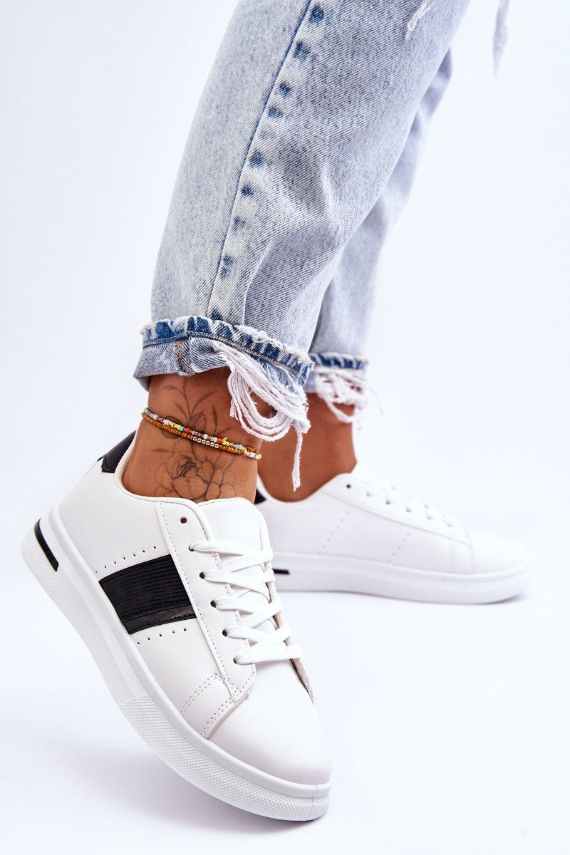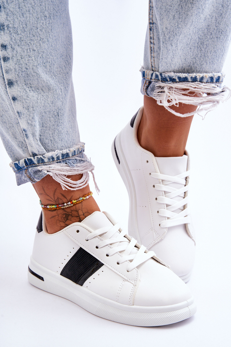 If you value style and comfort every day, be sure to check out our offer for sports footwear! This model is made of eco leather. Sneakers on the platform have a sole made of plastic. Fashionable color combinations are great for many stylizations. Classic lace-up model. The comfort will be ensured by a soft, material and foam insole, which can also be removed. The sides of the footwear are slightly perforated, which increases the air flow inside the footwear. When choosing a size, please refer to the size chart.
