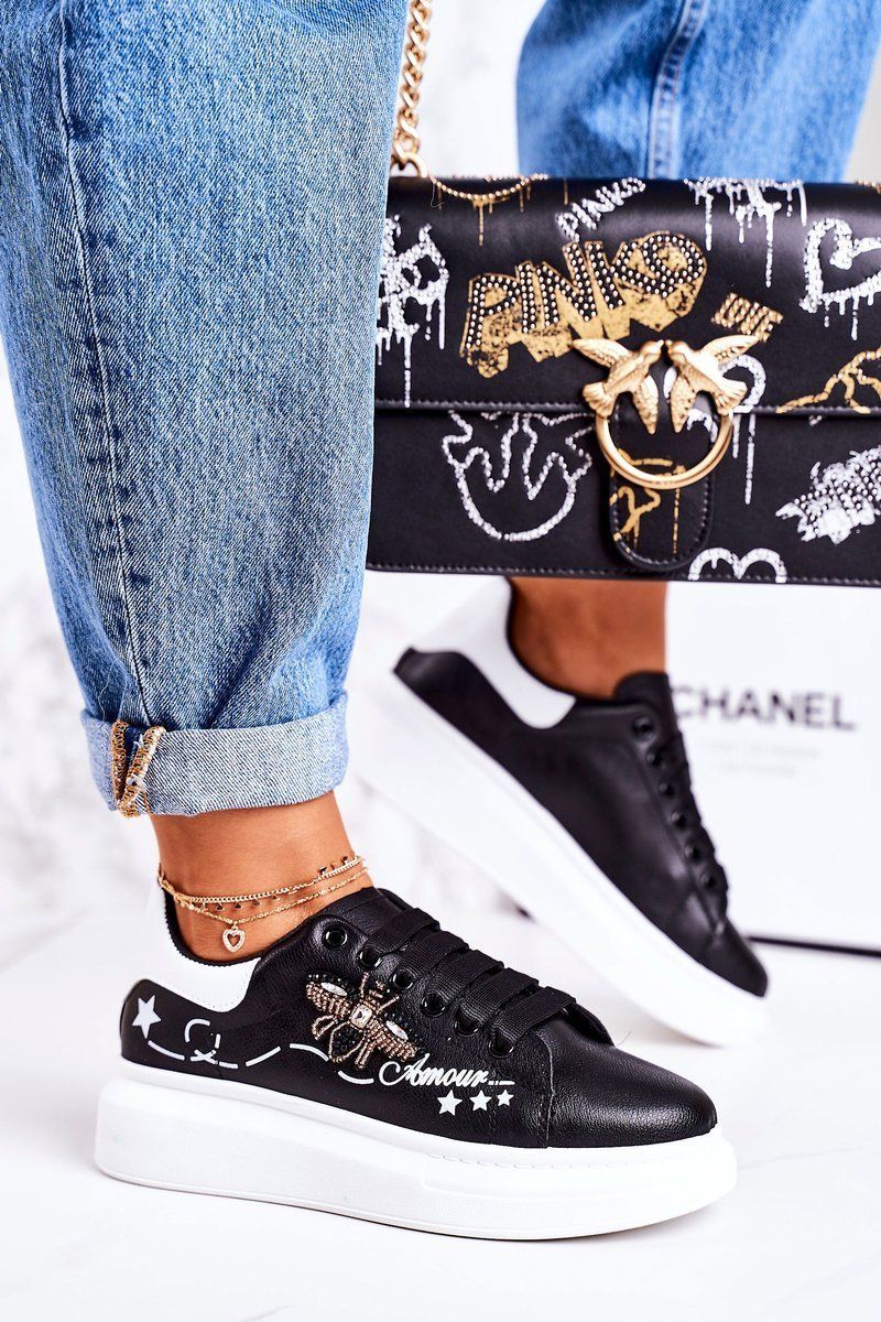 Sneakers with a decorative fly made of eco leather. A few-centimeter sole will lift your figure. Our comfort will be ensured by a soft material insole. Available in several variants. Do not wait and order today! When choosing a size, please use the size chart.