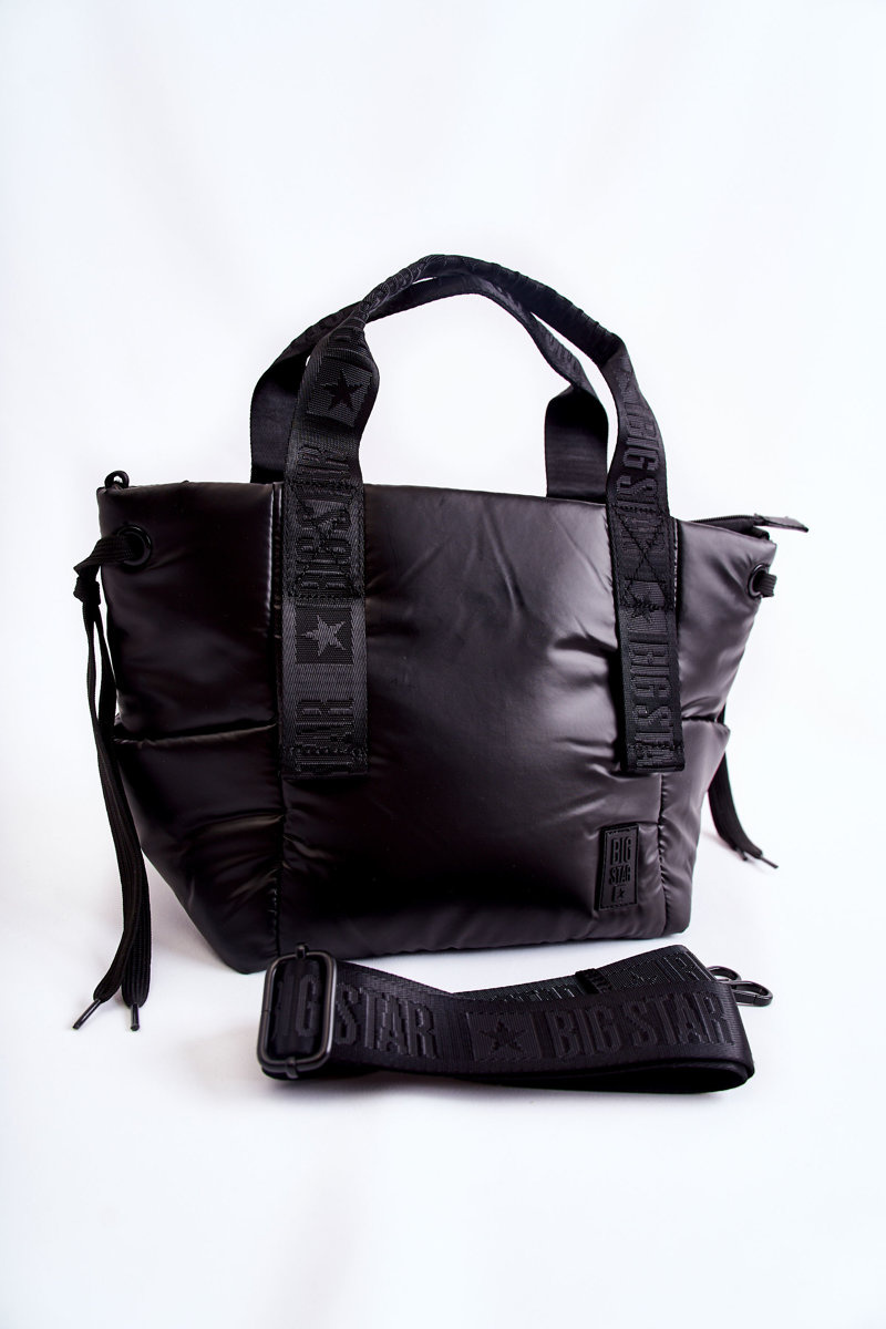 The sports bag is made of high-quality fabric. It has a detachable, adjustable strap. The bag has one compartment closed with a zipper, in which there are two open pockets and one closed with a zipper. On the sides there are decorative laces and open pockets. In addition, the bag has a zipper pocket at the back. Be sure to check out our entire collection of BIG STAR handbags and backpacks.