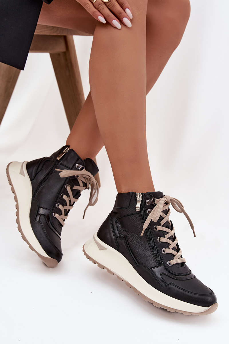 Women's Sports Boots on Platform Made of Natural Leather Zazoo Z1239 Black