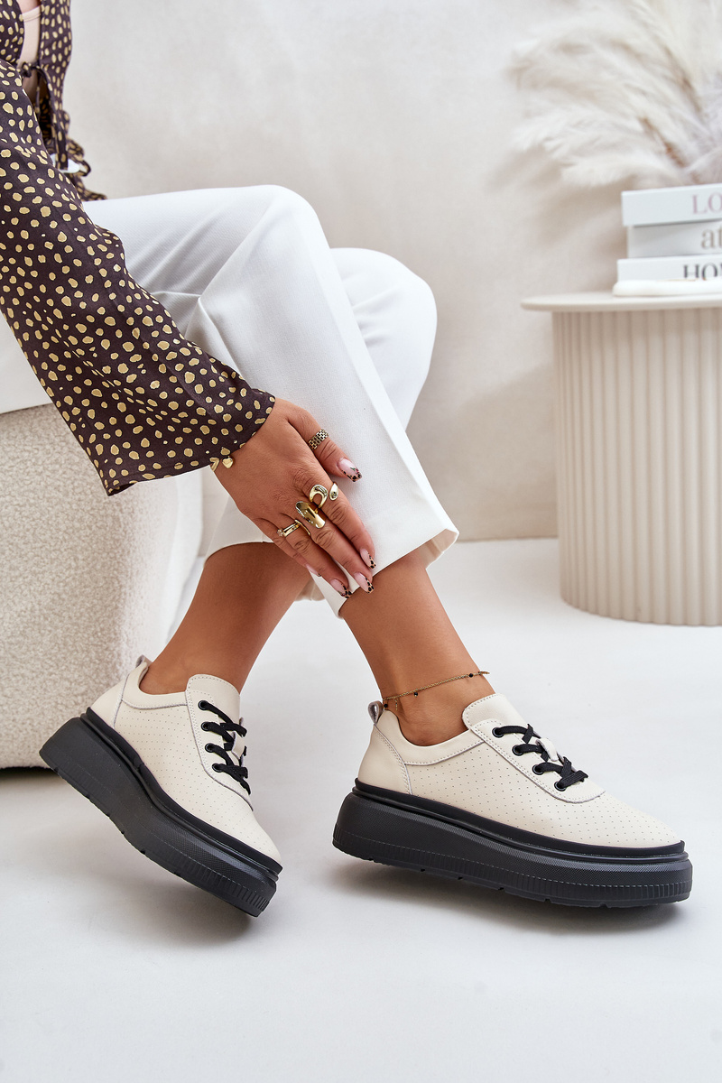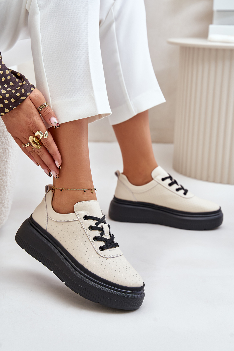 Women's Sports Shoes On Platform Natural Leather Beige Vinceza