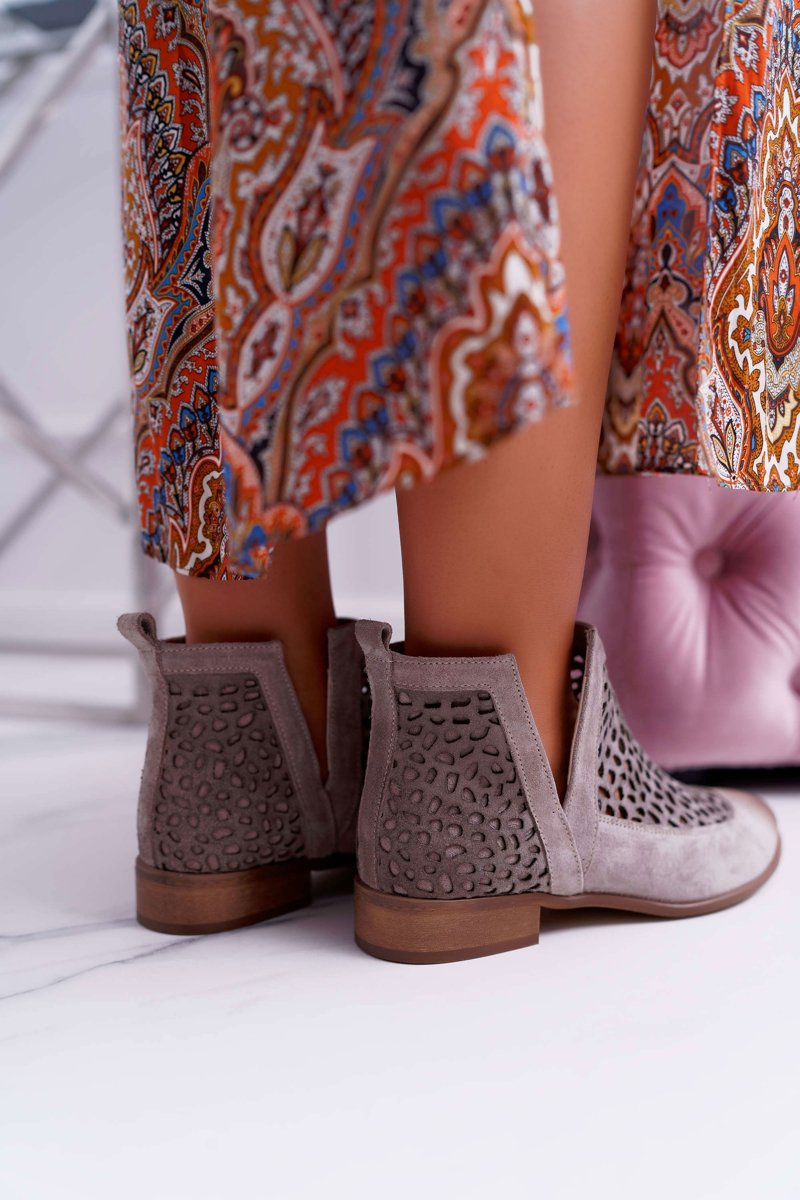 Beautiful spring boots with cutouts made entirely of suede natural leather. This is a Polish product, made by hand. They come in two colors, so you are sure to find your favorite color. Openwork finish on the upper and heel. The boots will be perfect for warm spring days. When choosing the size, please suggest the size chart available after hovering over or clicking on the size.