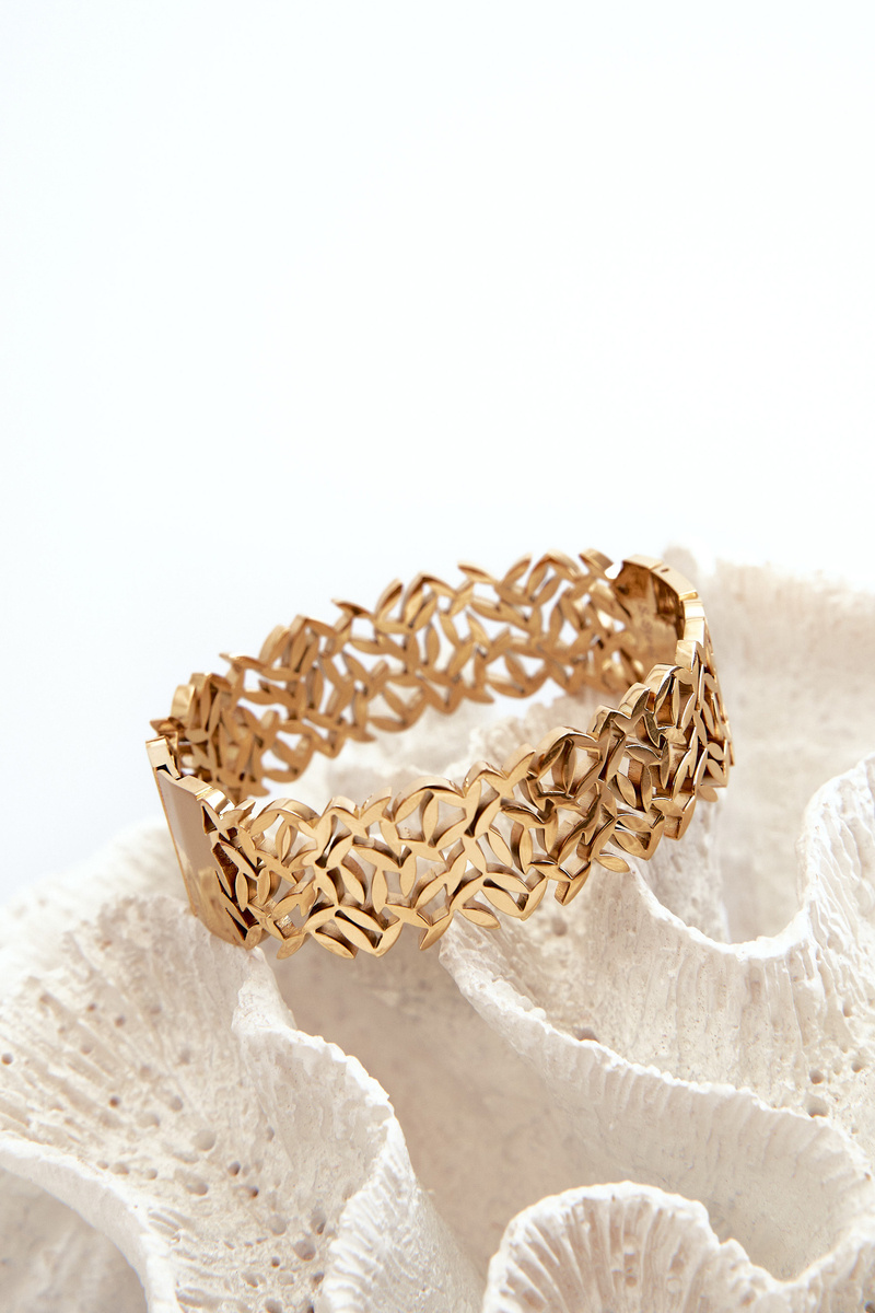 Women's bracelet made of stainless steel. Fastened with a snap, which makes putting on and taking off jewelry convenient and quick. A universal accessory that perfectly complements various stylizations, adding notes of elegance and style.
