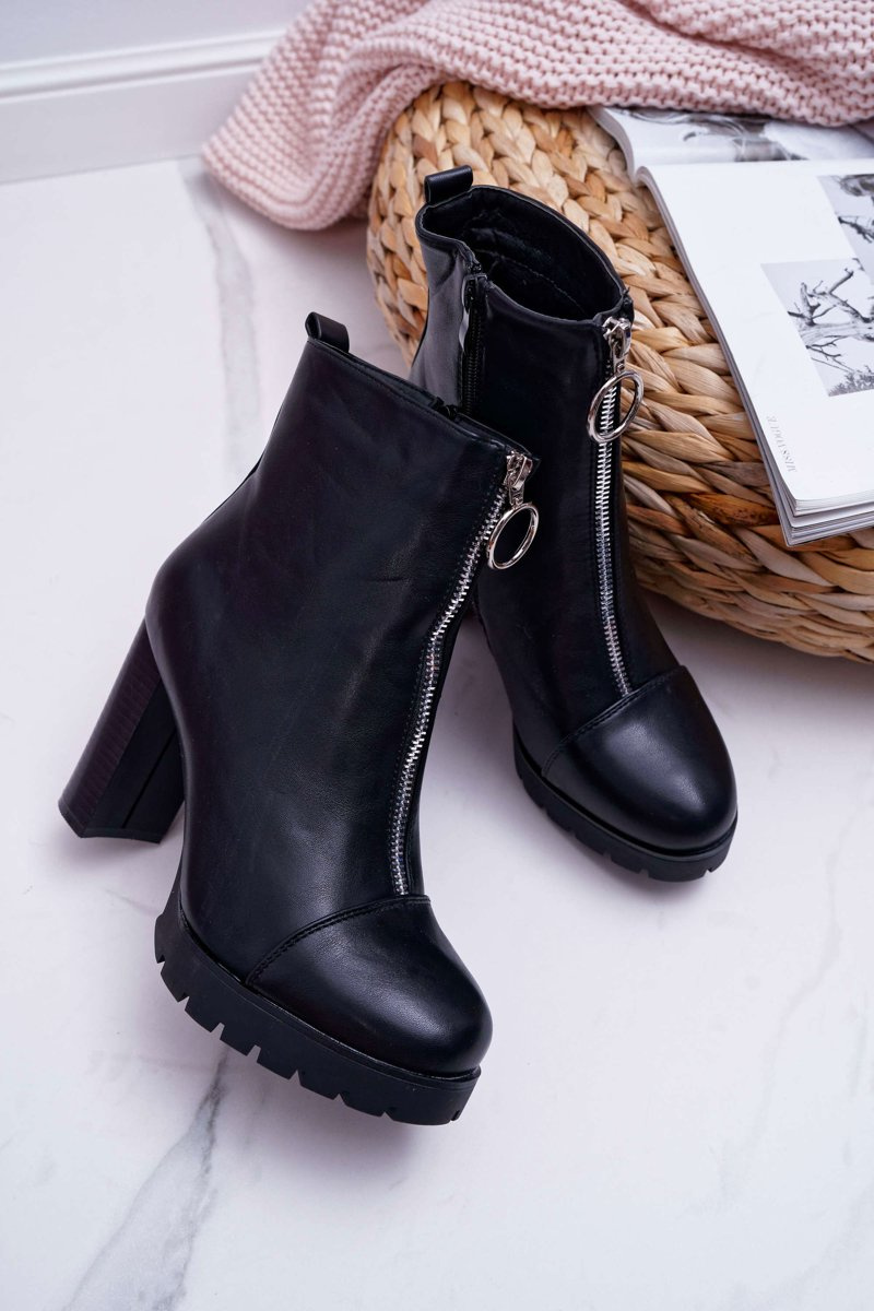 Women's Stiletto Boots Decorative Zipper Black Senuto
