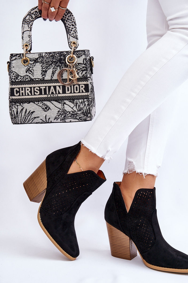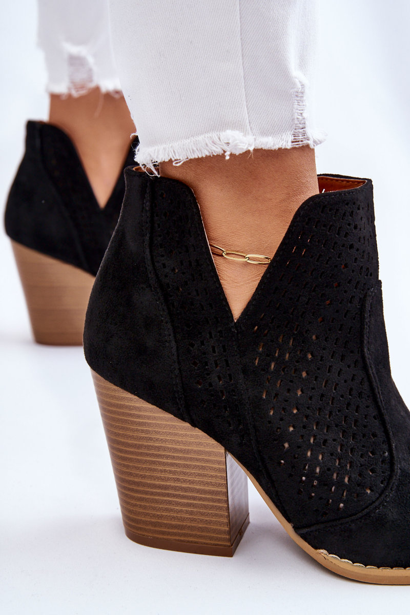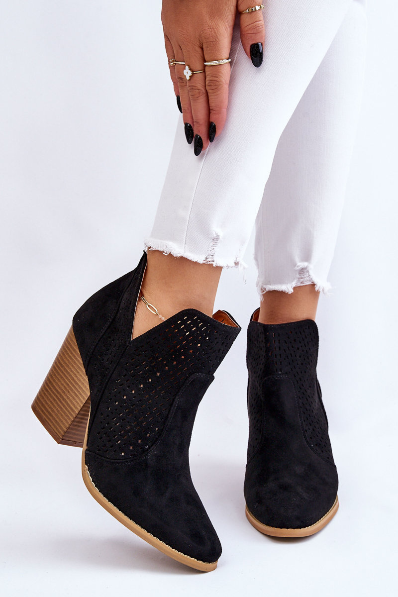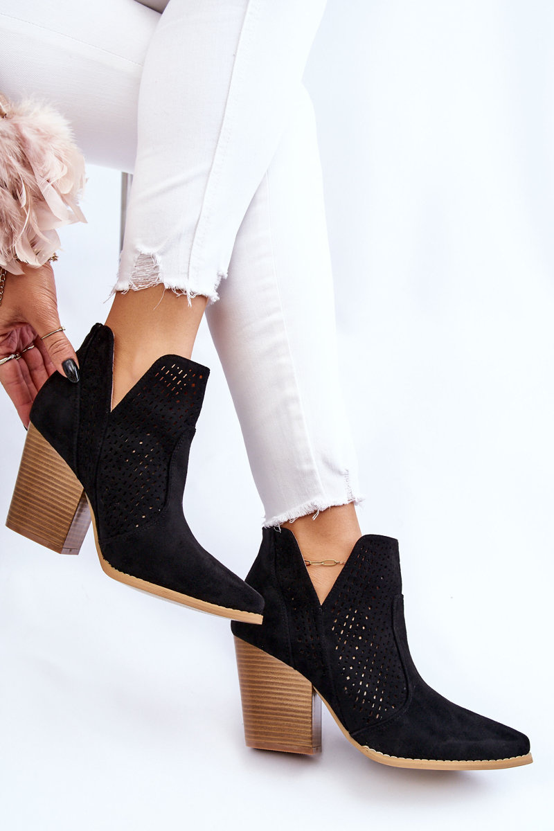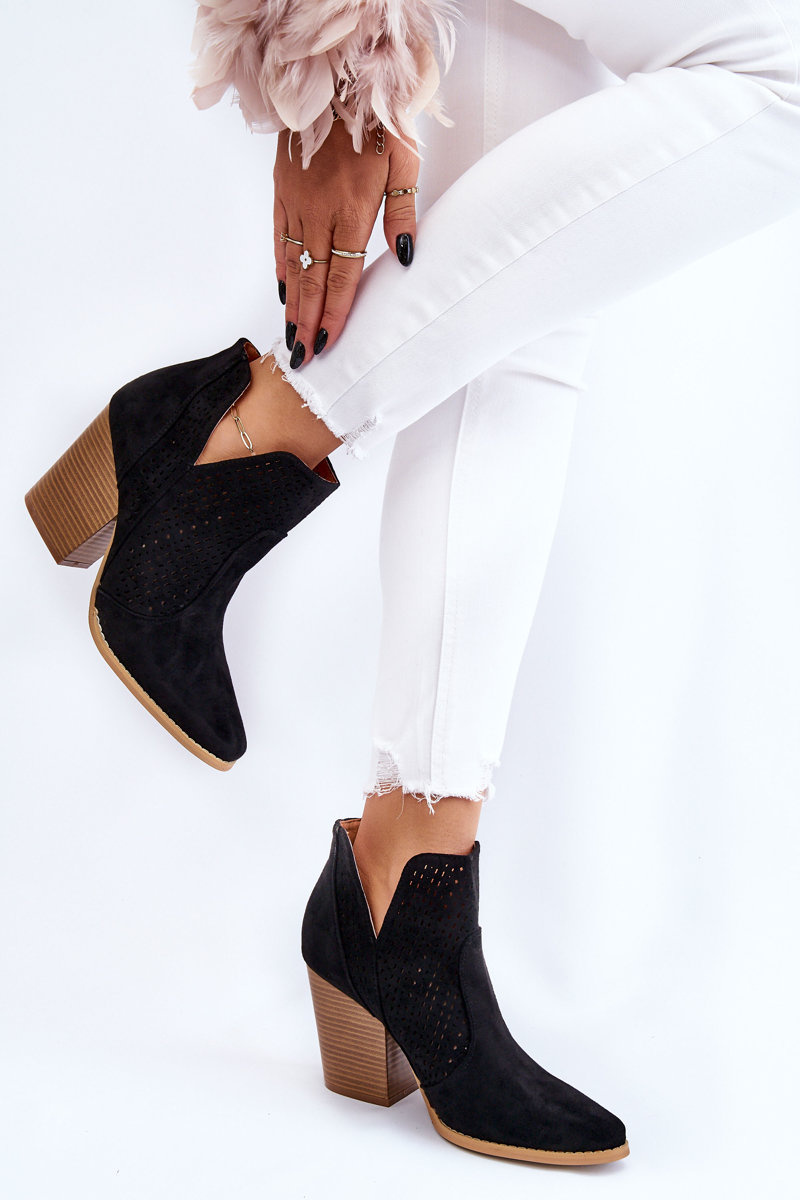 Make yourself a bit of luxury and choose our wonderful boots. A continuation of our wonderful model this time in a version on a delicate post. A unique style with openwork cutouts. Slip-on boots that will find their use in many stylings. Airy dresses or pants - wear them as you like! When choosing the size, please suggest the size chart.