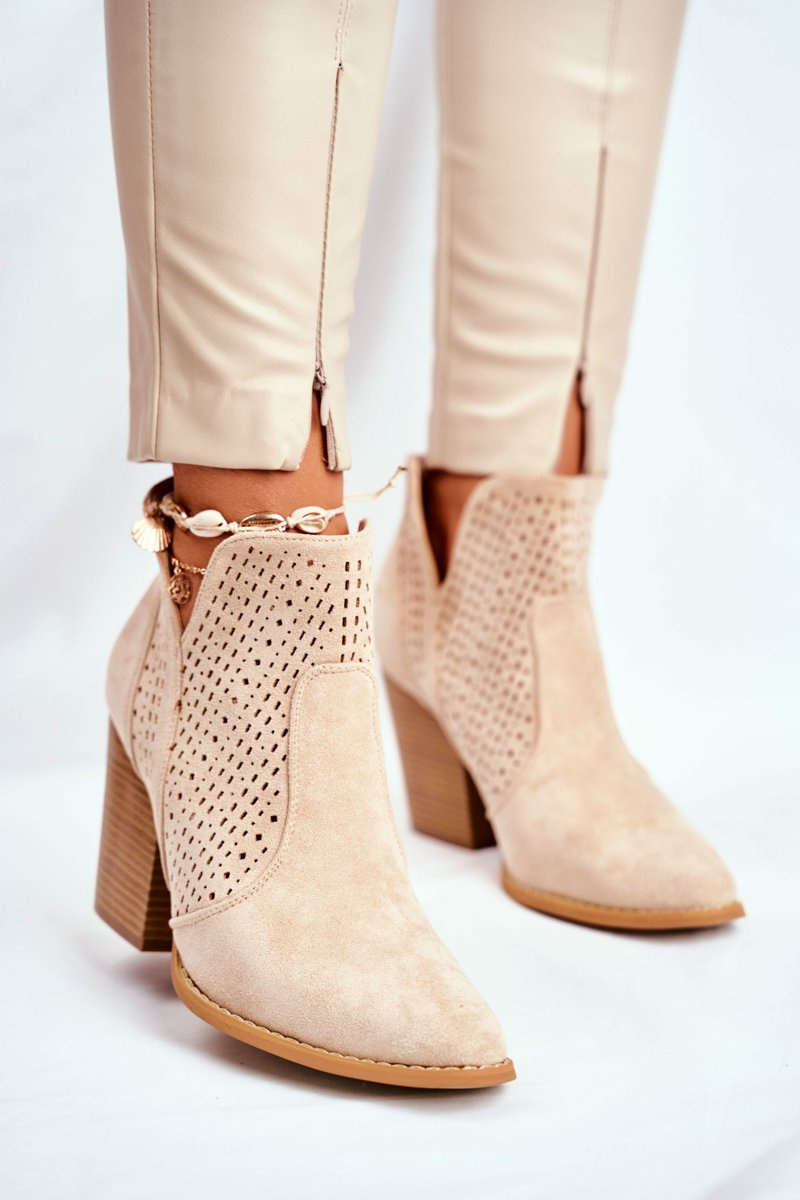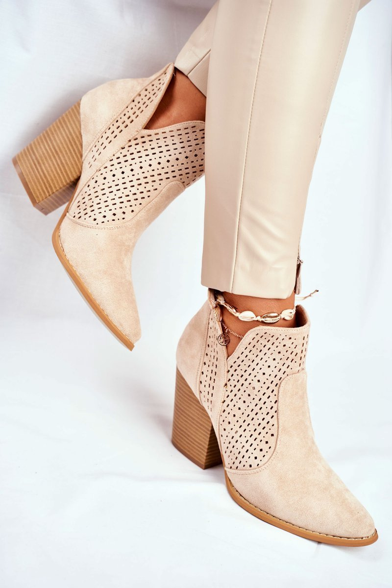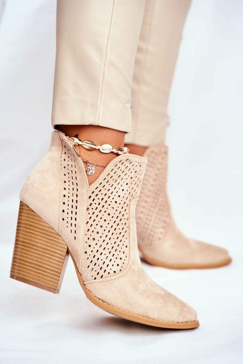 Women's Stiletto Boots Suede Openwork Light Beige Shades