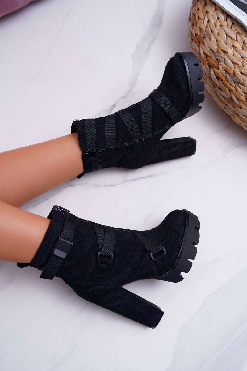 Shoes should be fashionable as well as practical, and this is exactly what our boots are. The upper is made of eco-suede, which goes well with many styles. The interior is covered with a nice-to-touch shoe blanket. The zipper on the inner part of the upper will make it easy to put on, while the decorative zipper on the front combined with the straps guarantees a unique design. The strap at the top is adjustable, making them fit even better on the leg. When choosing the size, please suggest the size chart, which is available after hovering over or clicking on a given size.