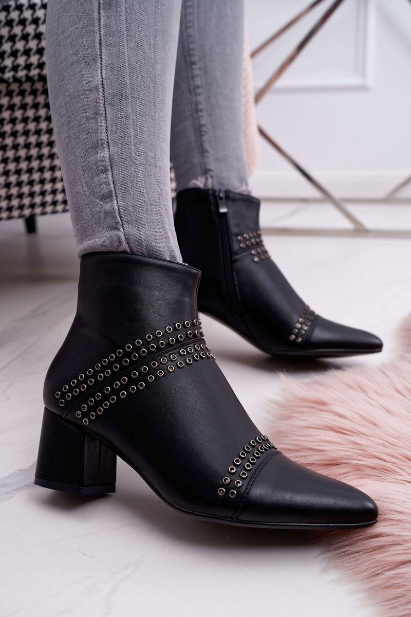 Black boots in a classic version with a pointed toe will work well in any styling. The zipper on the side of the upper looks fashionable and makes it easy to put on. The interior is covered with a shoe blanket, which will keep us warm on colder days. Rivet decoration gives them a stronger character. When choosing the size, please suggest the size chart.