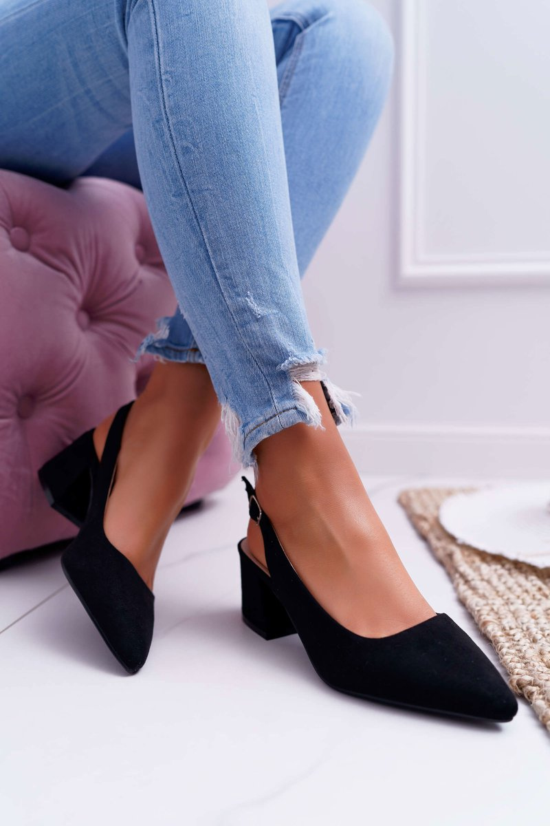 Classic pumps in suede version! They are perfect for elegant occasions! Cut with a pointed nose! Model based on a stable, low-height block. Soft insole will provide us with comfort at every step! They look beautifully on the leg! You must have them in your collection! When choosing the size, please follow the size chart.