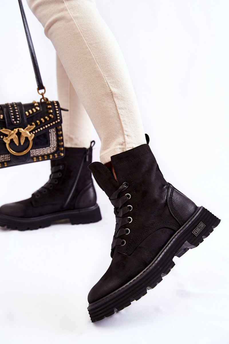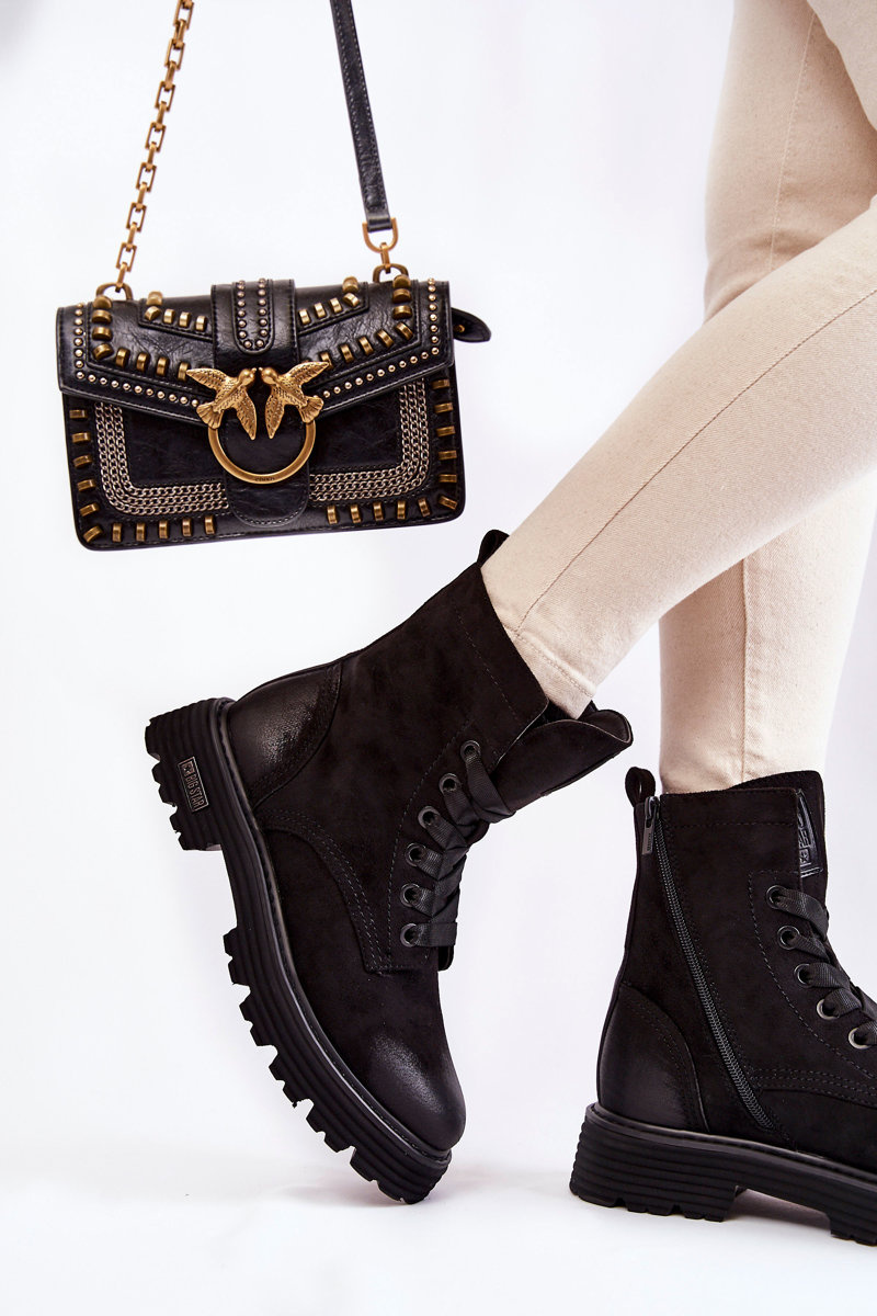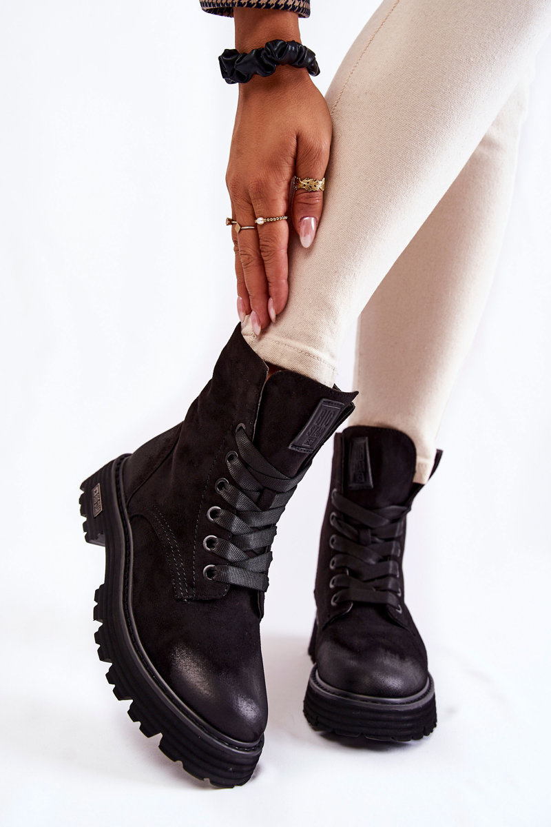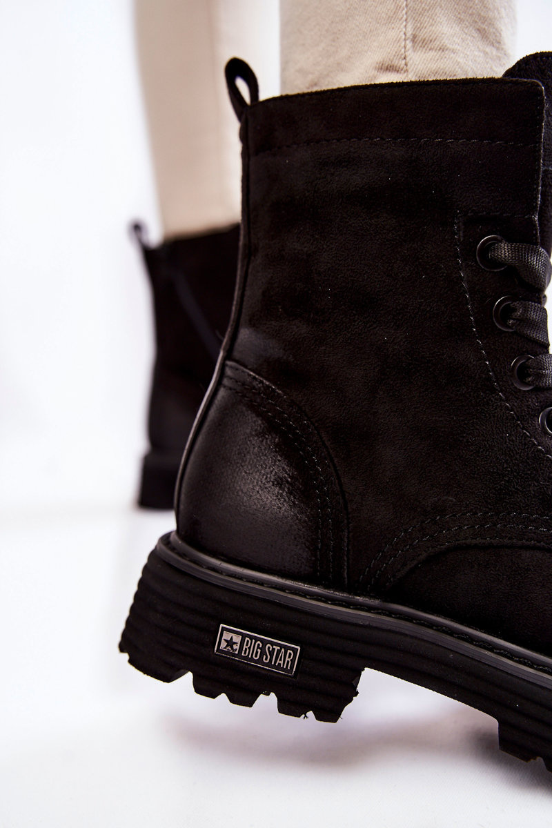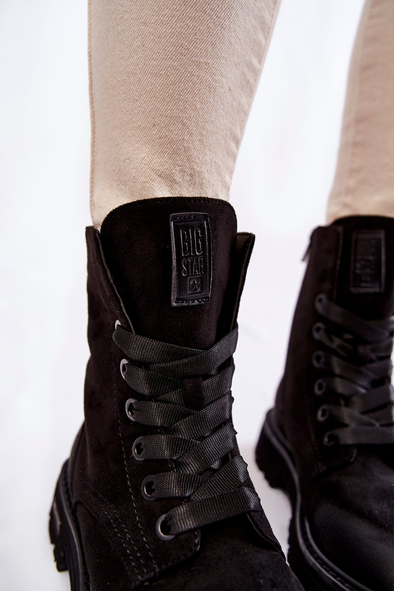 The unique Big Star boots are made of eco suede. They have fashionable abrasions at the toe and back of the upper. Additionally, the heel counter is stiffened. Uppers fastened on the side with a zipper and classically laced. The boots have warming in the form of a nice-to-touch shoe blanket. They are mounted on a delicate platform and flat heels. When choosing a size, please use the size chart.