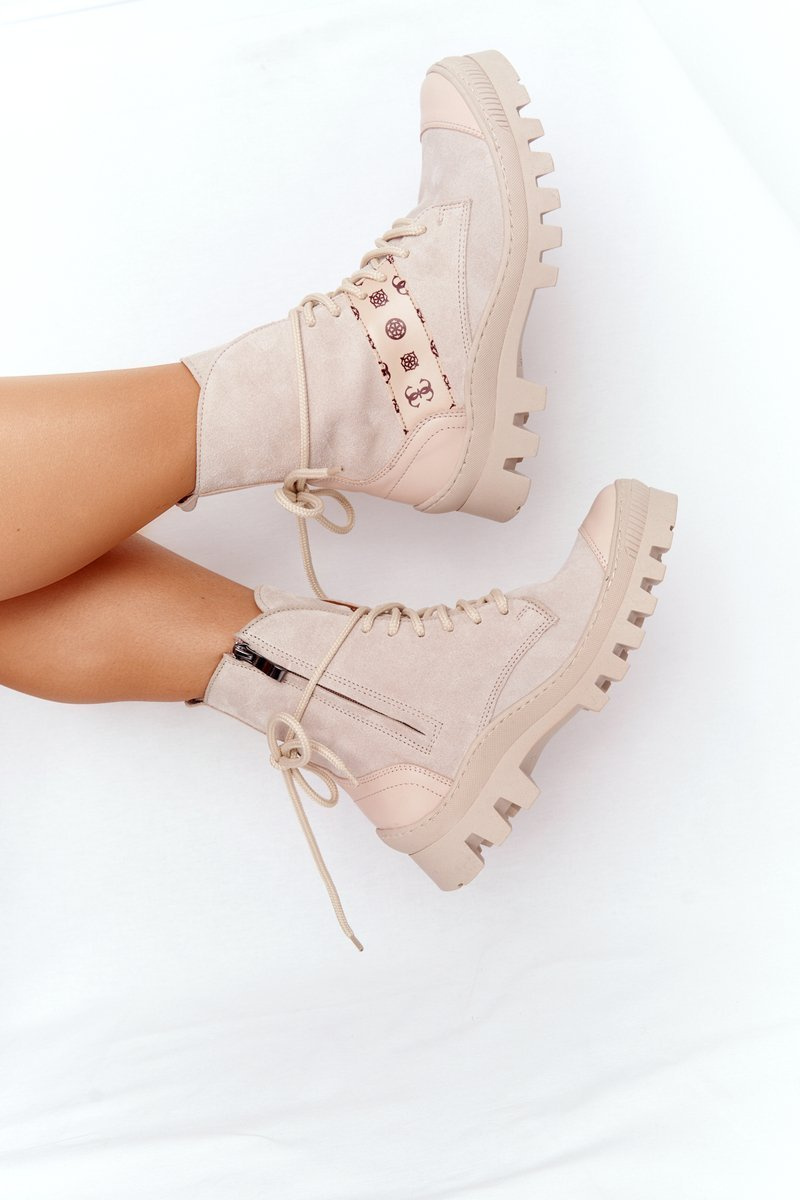 Women's Suede Boots Lewski Shoes 2942-0 Light Beige