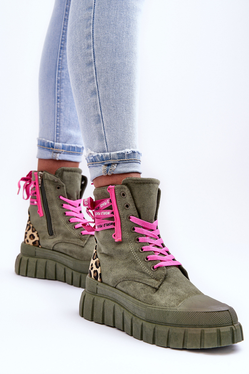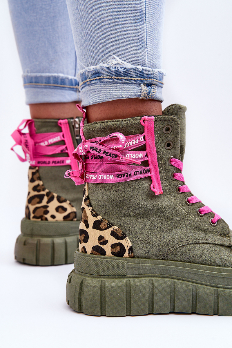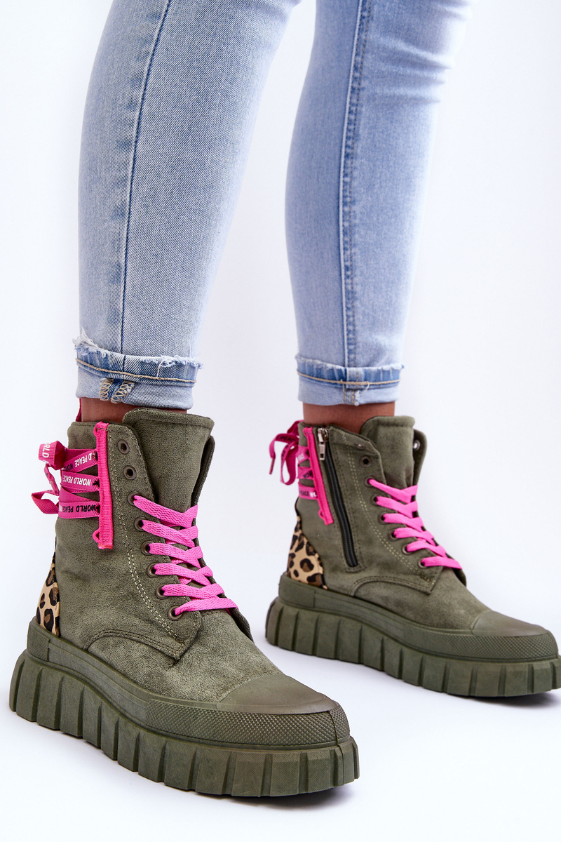 Women's fashionable boots have been set on a massive platform made of rubber material. Made of eco suede. This model is fastened with a zipper on the side of the upper and additionally laced. The tip is rounded. The fabric insole will provide comfort and convenience. You must have them in your wardrobe. When choosing a size, please refer to the size chart.