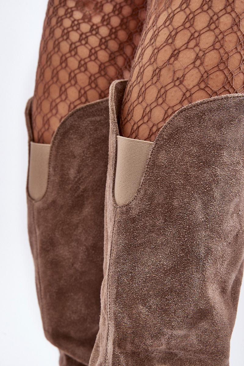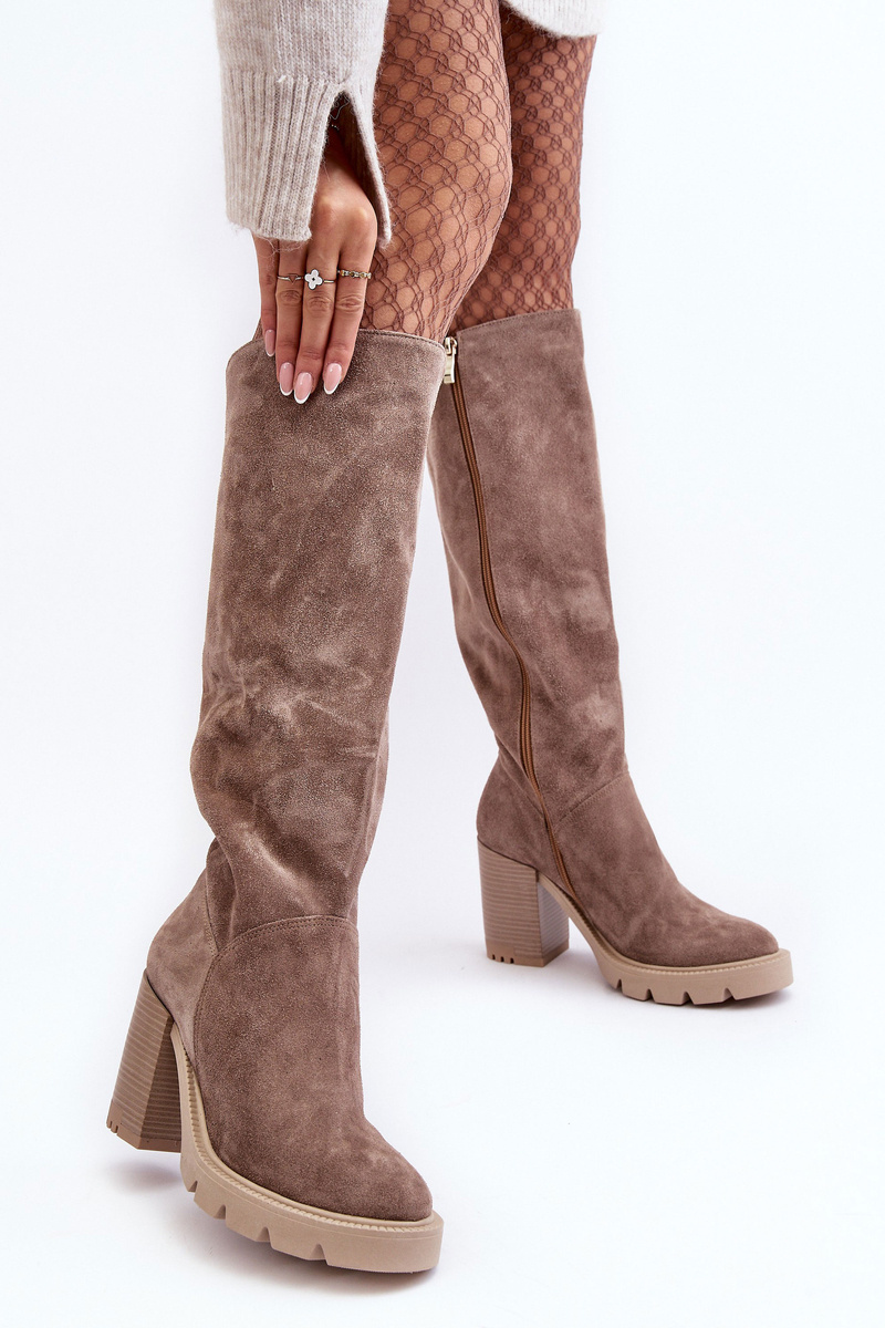 Women's Suede Boots on Heel Dark Beige Lewski 3371