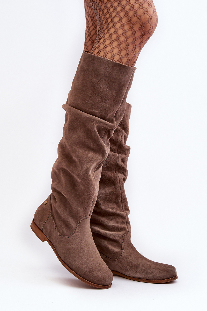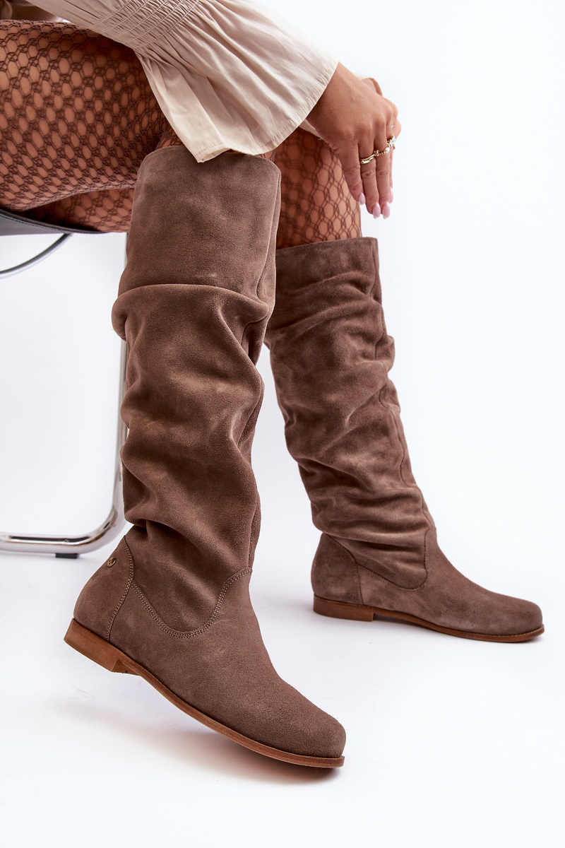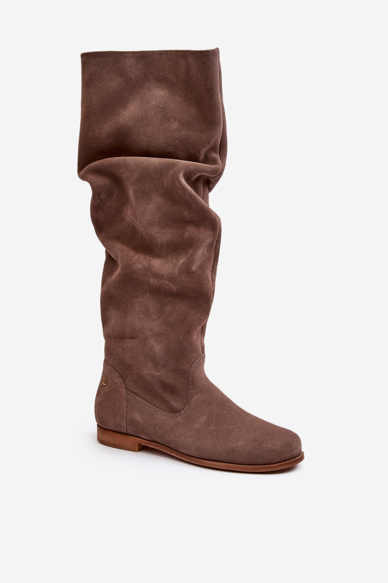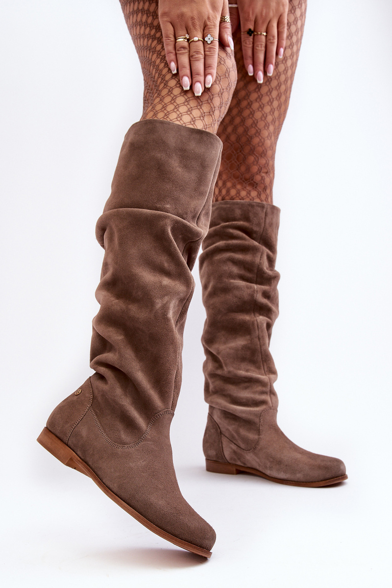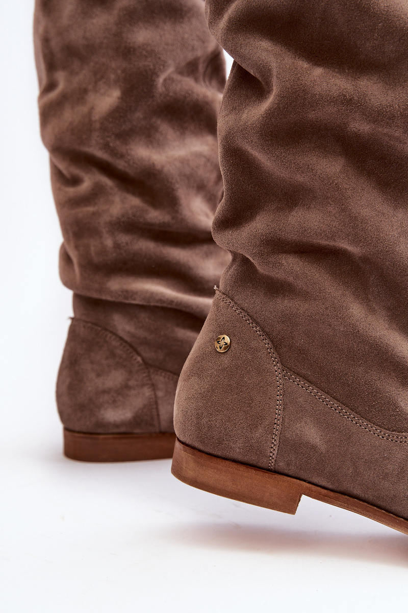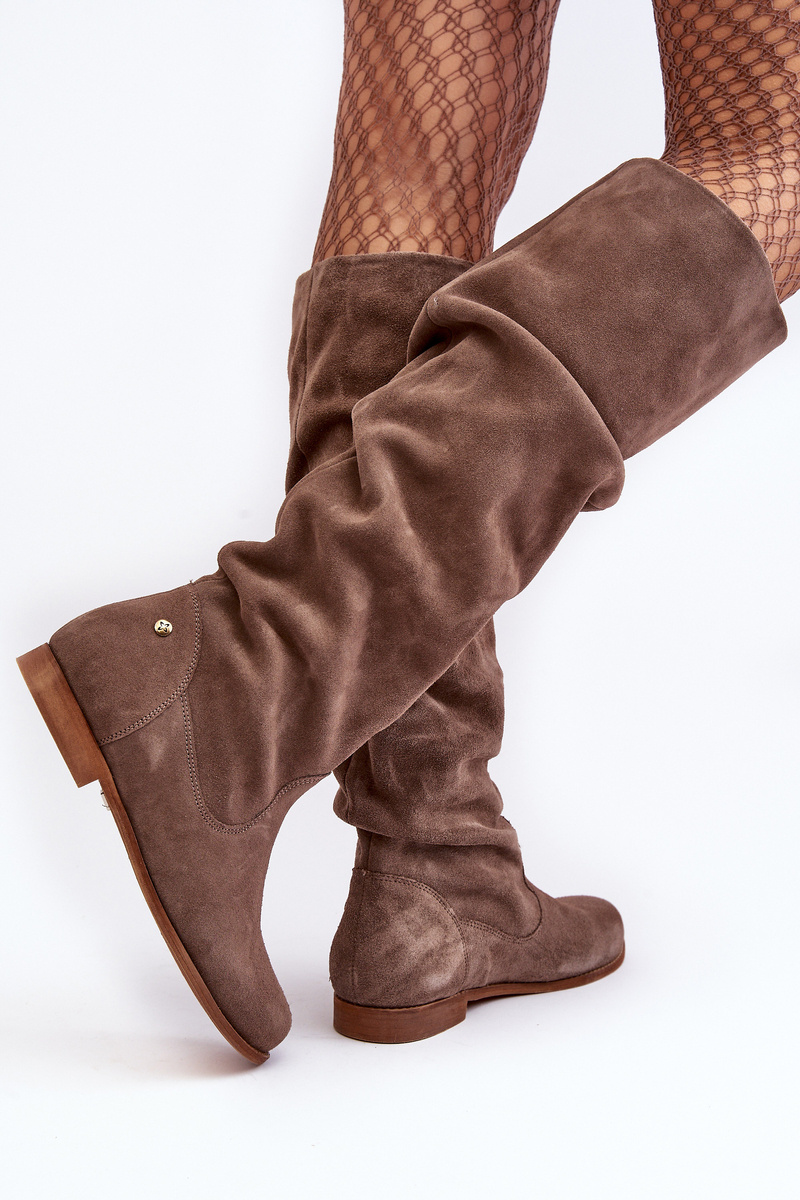 Women's Suede Boots To The Knee Maciejka 05790-04 Beige