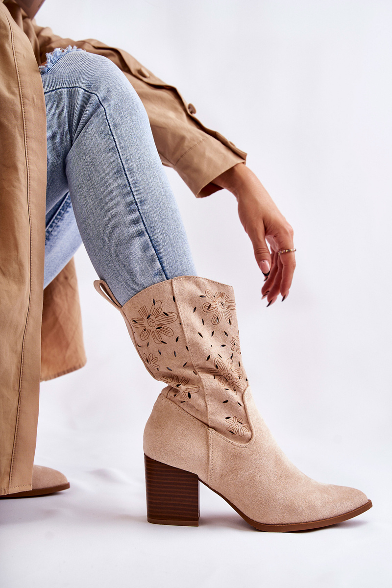 Women's Suede Boots With Cowboy Boots Beige Ariane