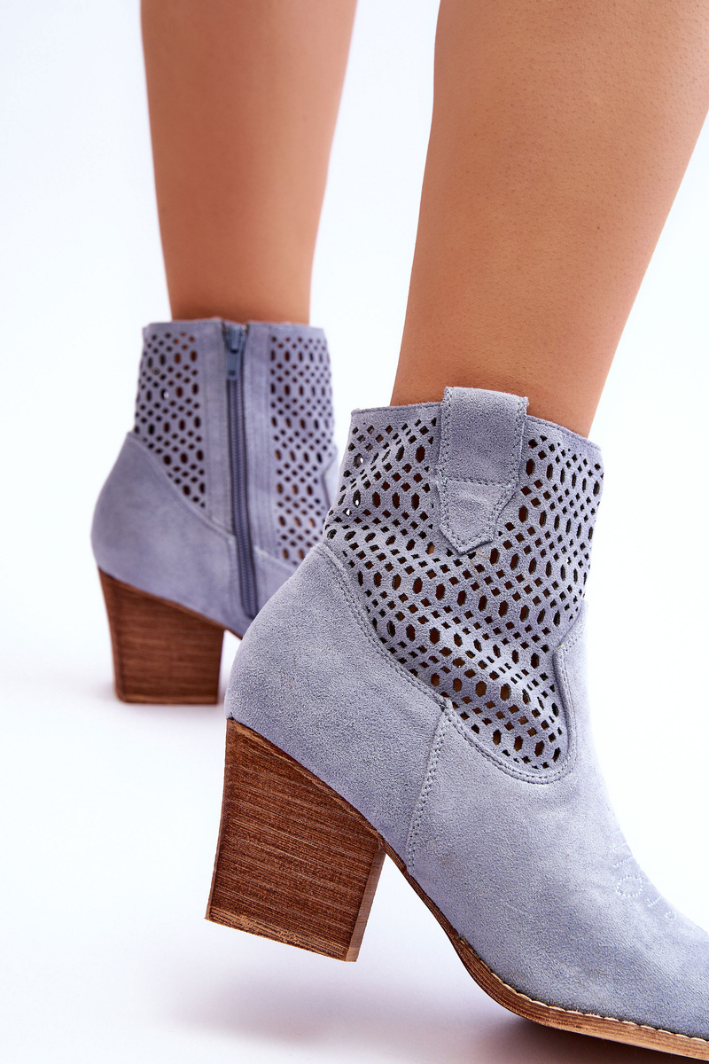 Unique cowboy style boots with an ankle upper. The boots are made of ecological suede with an openwork pattern and stitching on the front. The material insole and a stable heel in the form of a post will ensure your comfort. Boots will certainly complement many of your outfits. Be sure to check out our entire collection of cowboy boots! When choosing a size, please refer to the size chart.