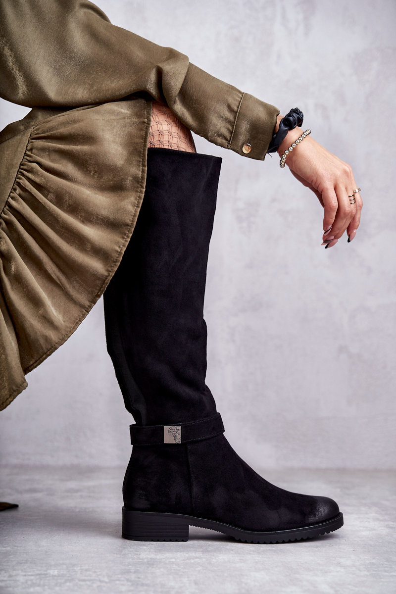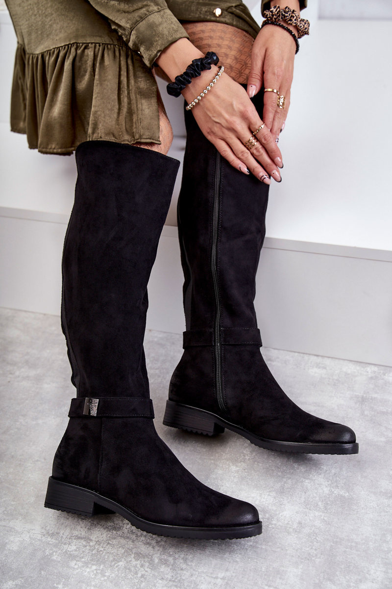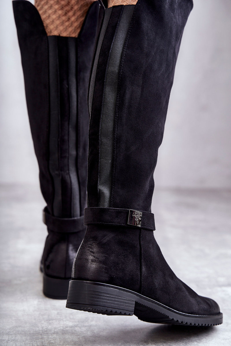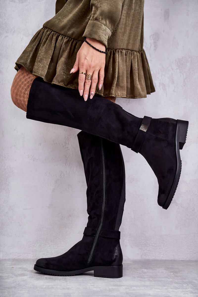 Women's Suede Flat Heel Boots Black Henrike