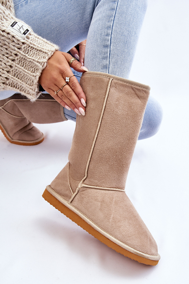 Women's Suede High Snow Boots Insulated Beige Reyma