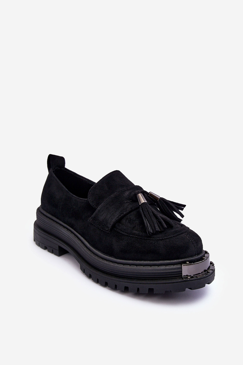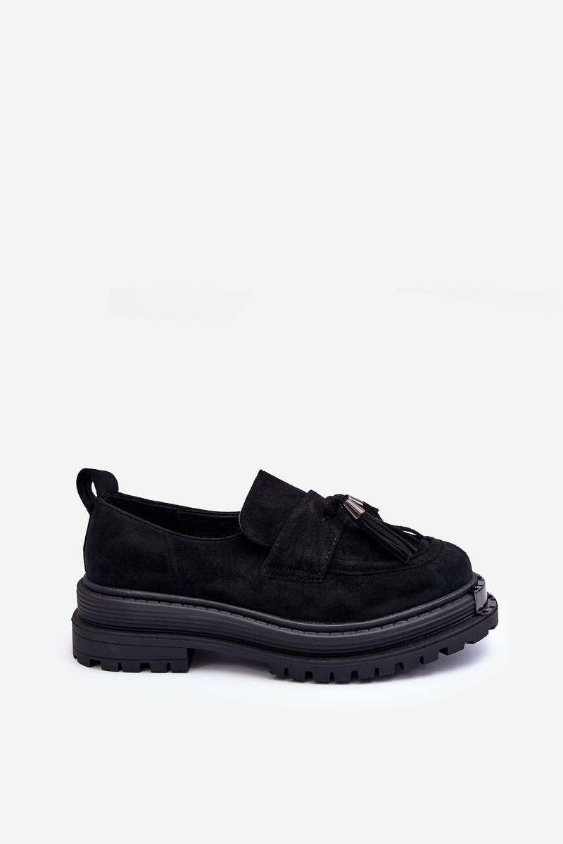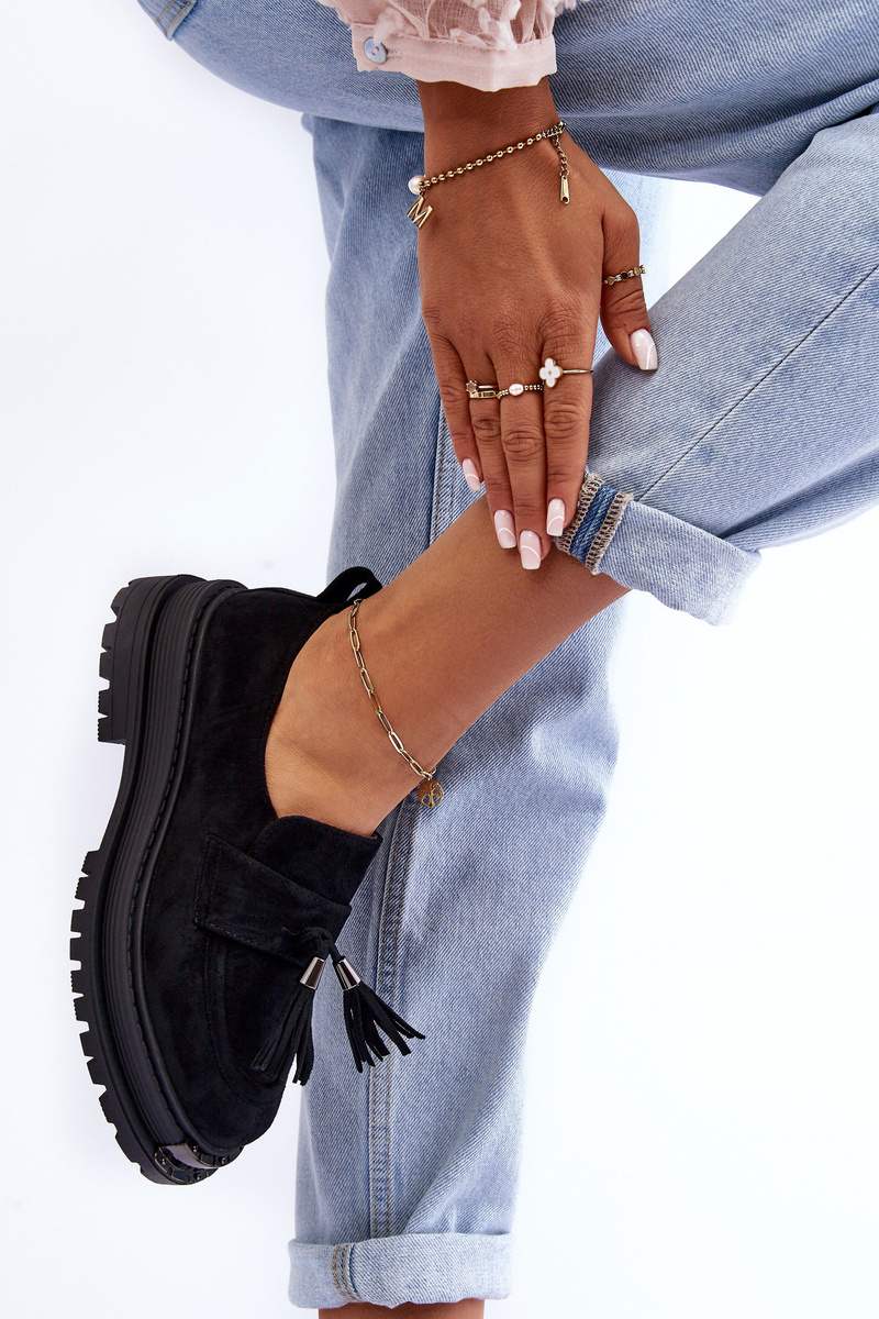Women's moccasins are the perfect shoes for many occasions! Made of eco suede. Set on a flat heel and platform. Round toes. The front is decorated with a strap with fringes. Soft eco leather insole will provide comfort during use. In addition, the counter is stiffened. This model is sure to please you! When choosing a size, please refer to the size chart.
