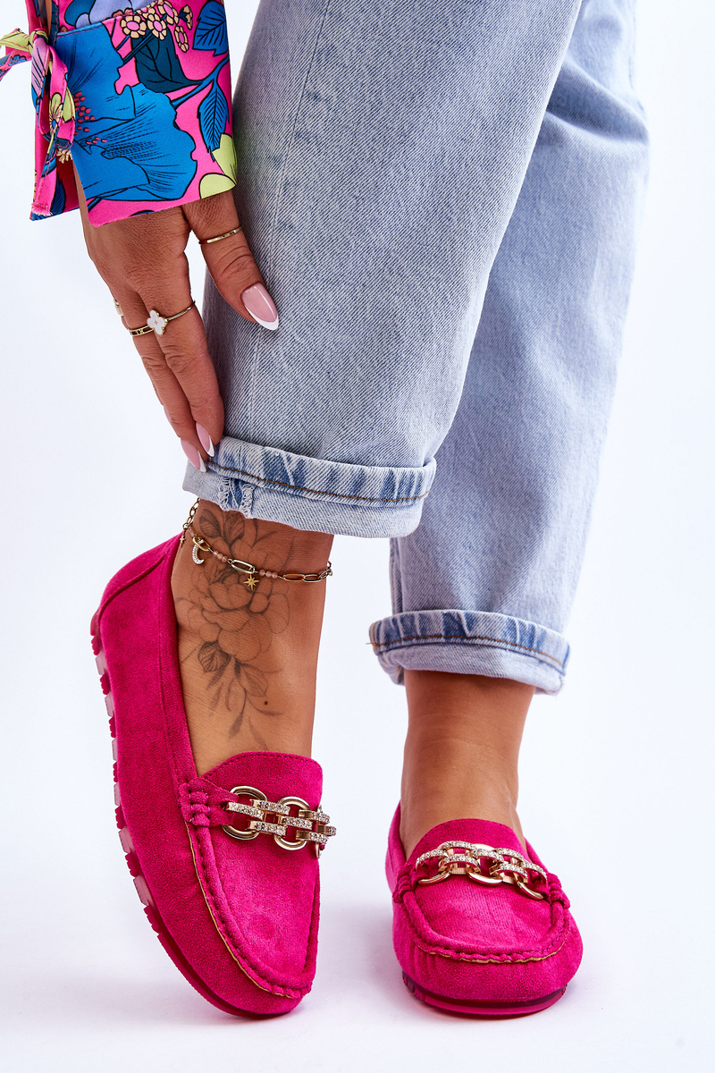 Women's loafers are made of eco suede. They have a decorative chain with jets on the front. The moccasins were set on a platform with a rubber, non-slip sole. The soft insole made of eco leather will ensure comfortable use. You absolutely should have them! When choosing a size, please refer to the size chart.