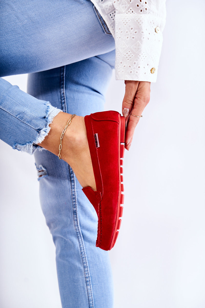 Incredibly comfortable women's loafers. The shoes are made of soft eco suede. The insole made of natural leather with a delicate perforation will ensure comfort during use. Moccasins will complement many of your stylizations. Square nose. They are mounted on a flat, rubber sole, which is additionally non-slip. Classic, slip-on model. When choosing a size, please use the size chart.
