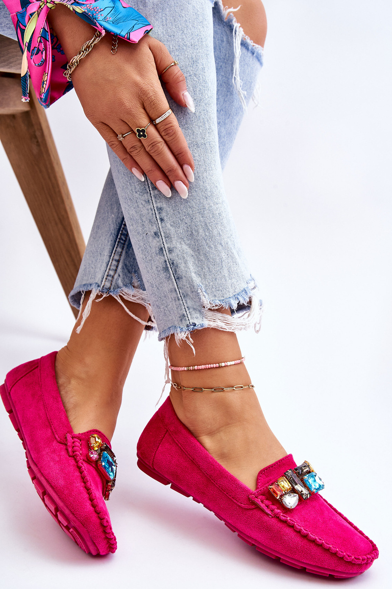 Women's Suede Loafers With Crystals Fuchsia Lucille