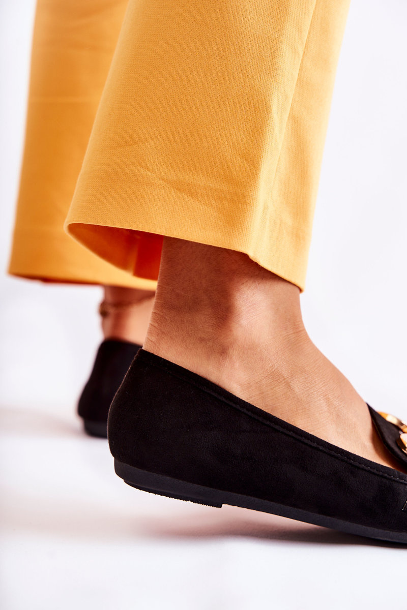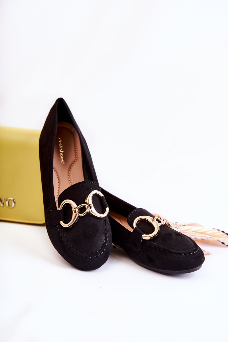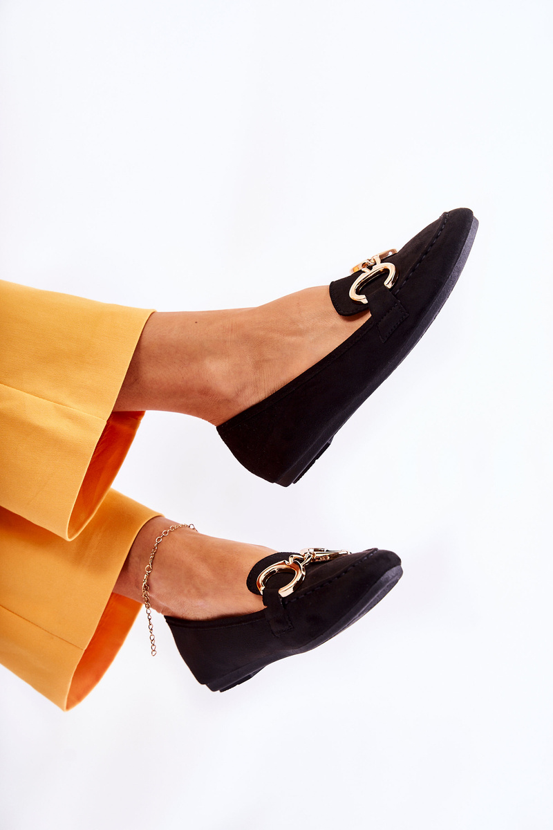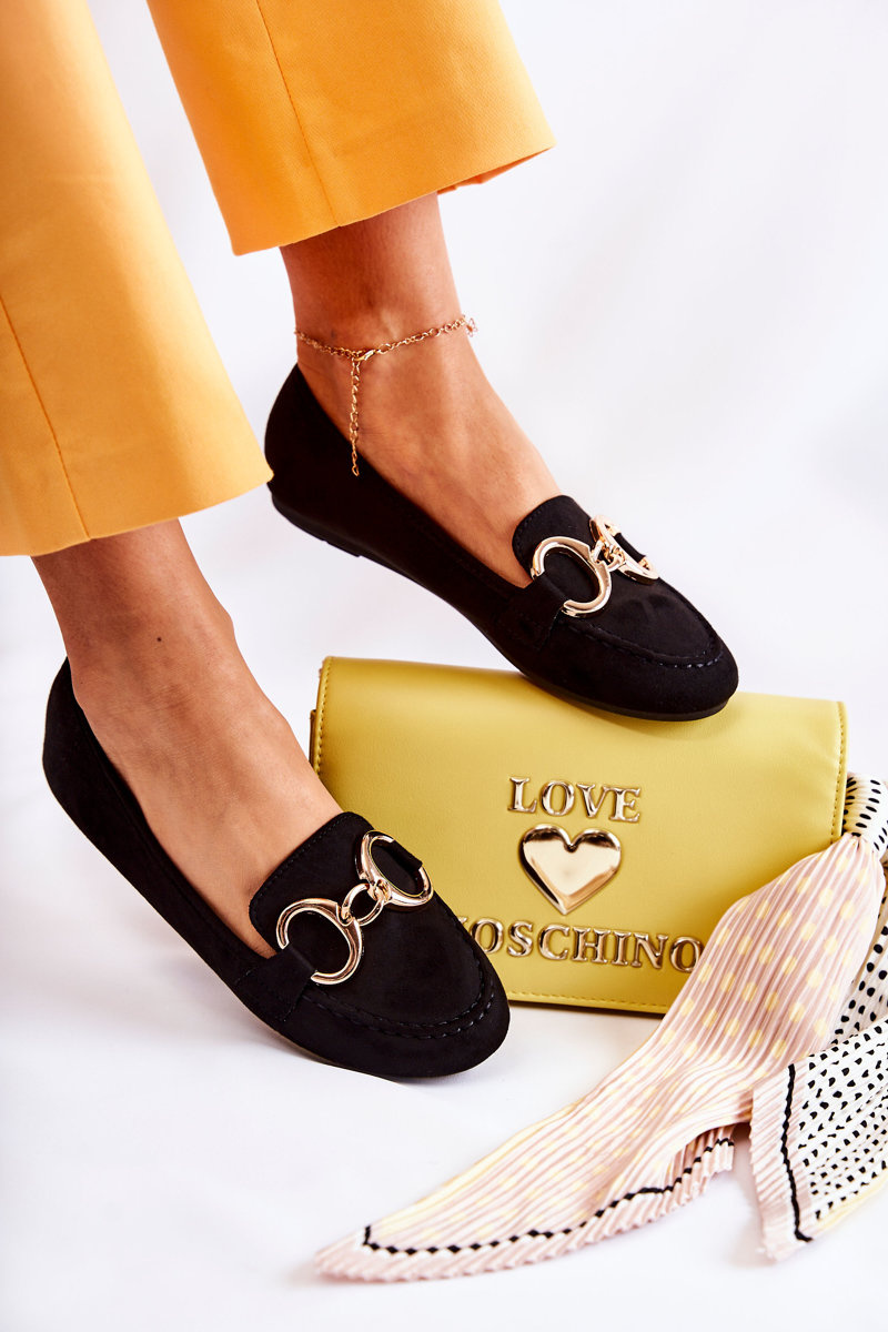 Elegant moccasins are made of eco suede. A soft insert with perforation will take care of your comfort during use. The insole is made of eco leather. Moccasins will work in many styles. On the front there is a decorative element made of plastic. Rounded nose. Shoes mounted on a flat heel. When choosing a size, please use the size chart.