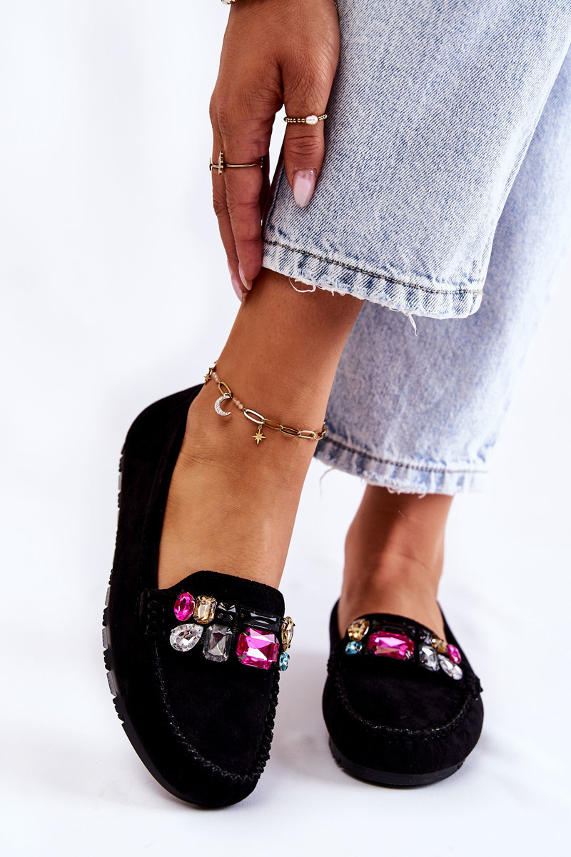 Women's suede loafers with decorations black Janetta
