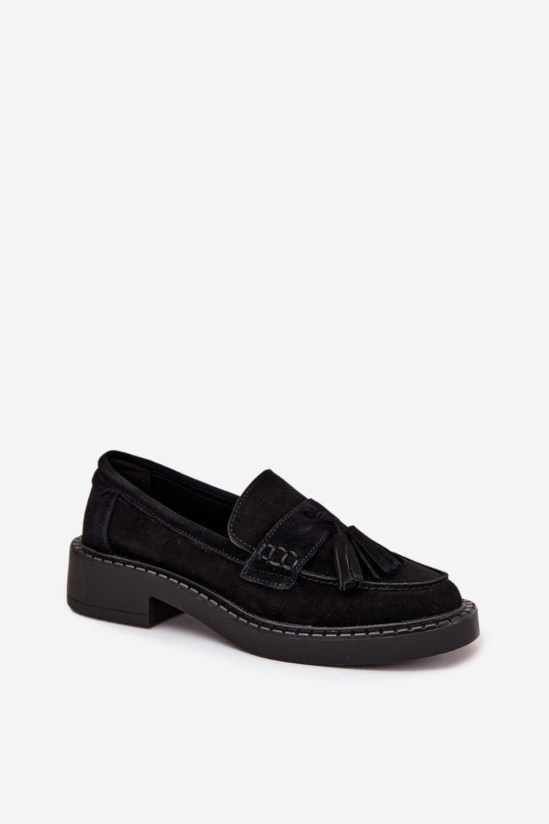 Women's Suede Loafers with Fringes D&A TW107 Black