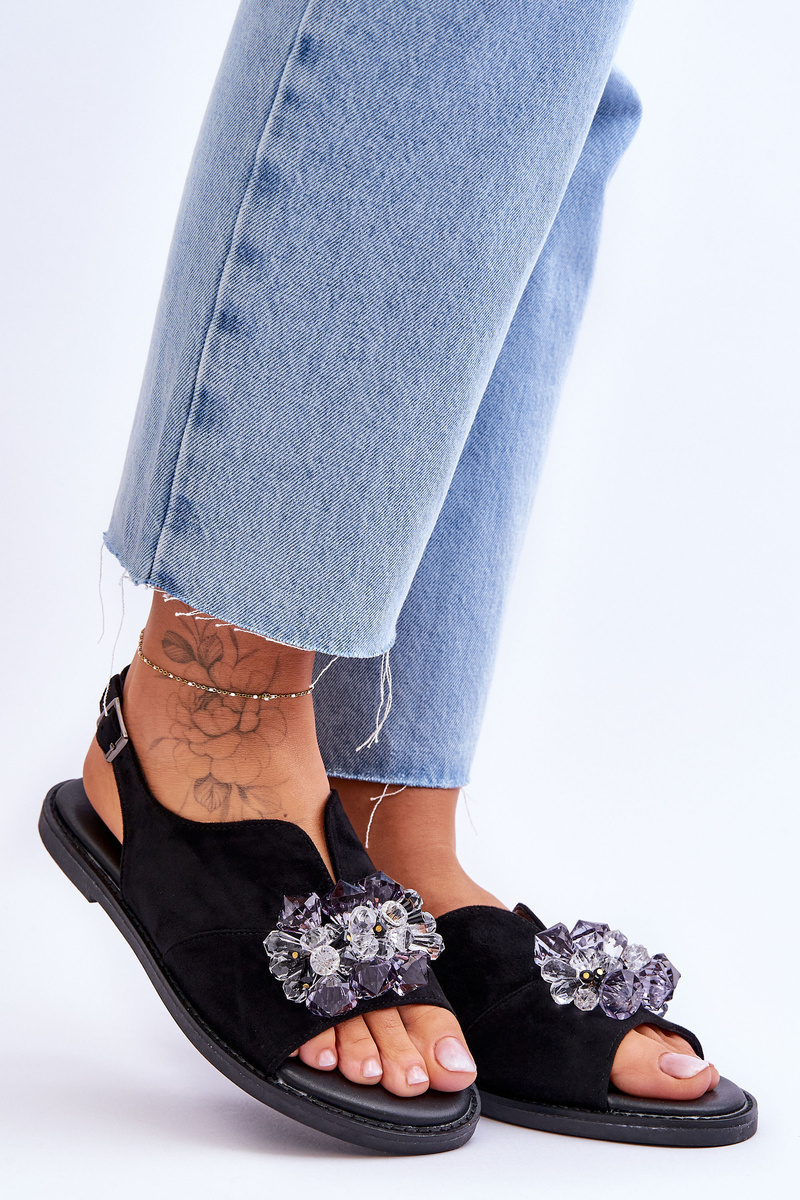 Women's Suede Sandals With Stones Black Mersea