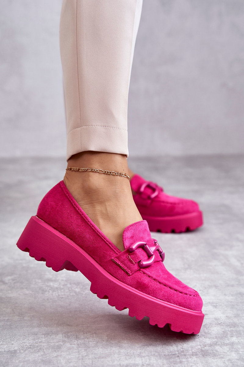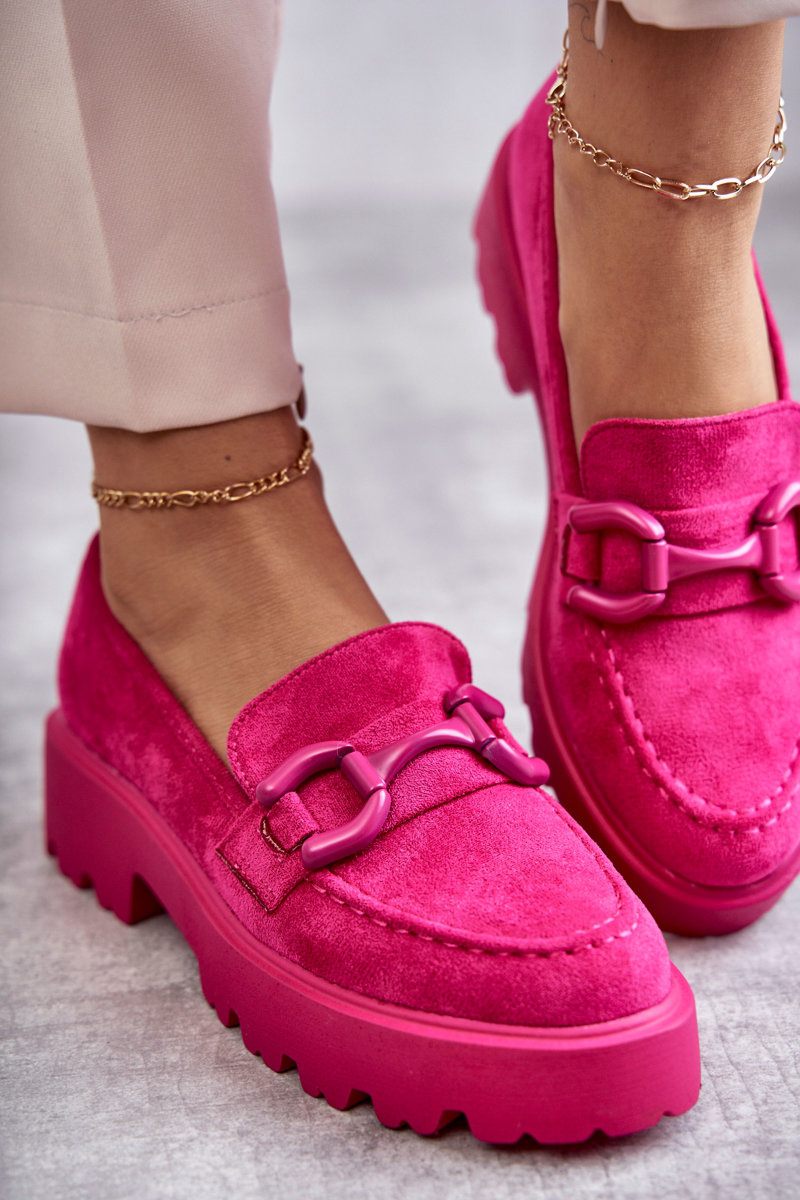 Classic shoes are made of high-quality ecological suede. On the front there is a characteristic pink decoration made of metal. These shoes have a platform and a flat heel. The grooved sole will perfectly isolate from uneven ground. A great model for many styles! Comfortable and fashionable at the same time. You absolutely must have them! When choosing a size, please use the size chart.