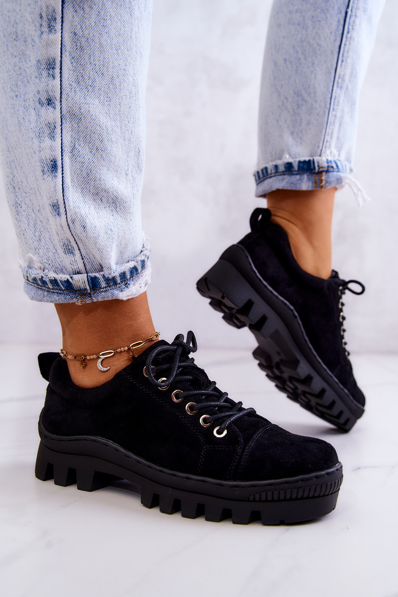 Women's Suede Shoes Tied Black Mayson