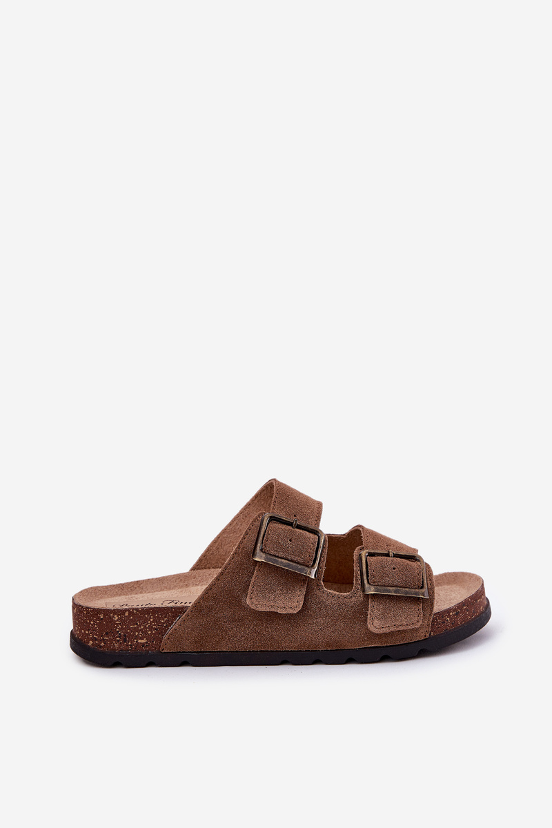 Women's Suede Slippers With Buckles Panto Fino RR267024 Brown