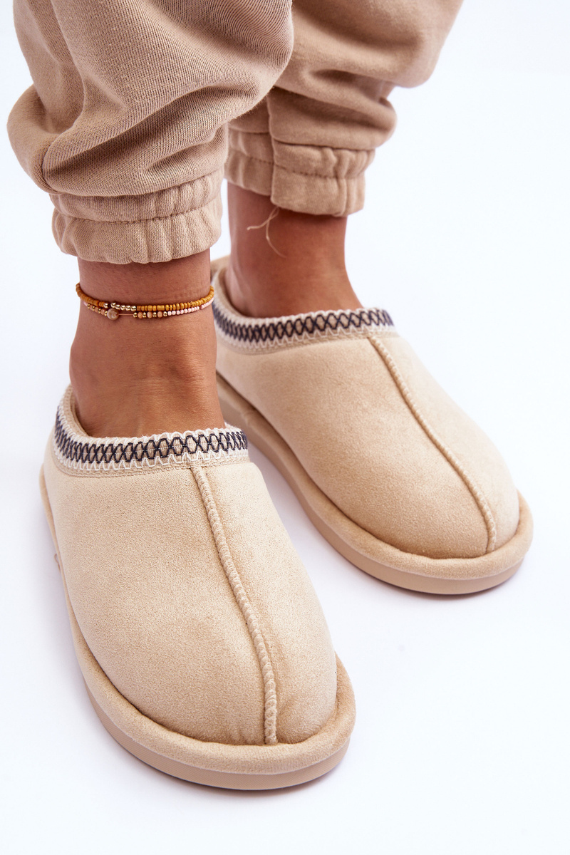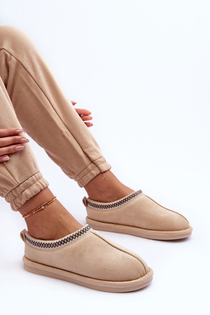 Women's Suede Slippers With Faux Fur Light Beige Polinna