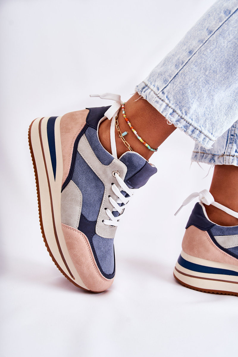 Women's sports shoes are mounted on a plastic platform with a hidden wedge. They have a low upper in front of the ankle. The model is tied with flat laces. The shoes are made of eco suede. The design is extremely comfortable to use. The comfortable insole is made of fabric. These shoes are perfect for everyday activities. When choosing a size, please use the size chart.