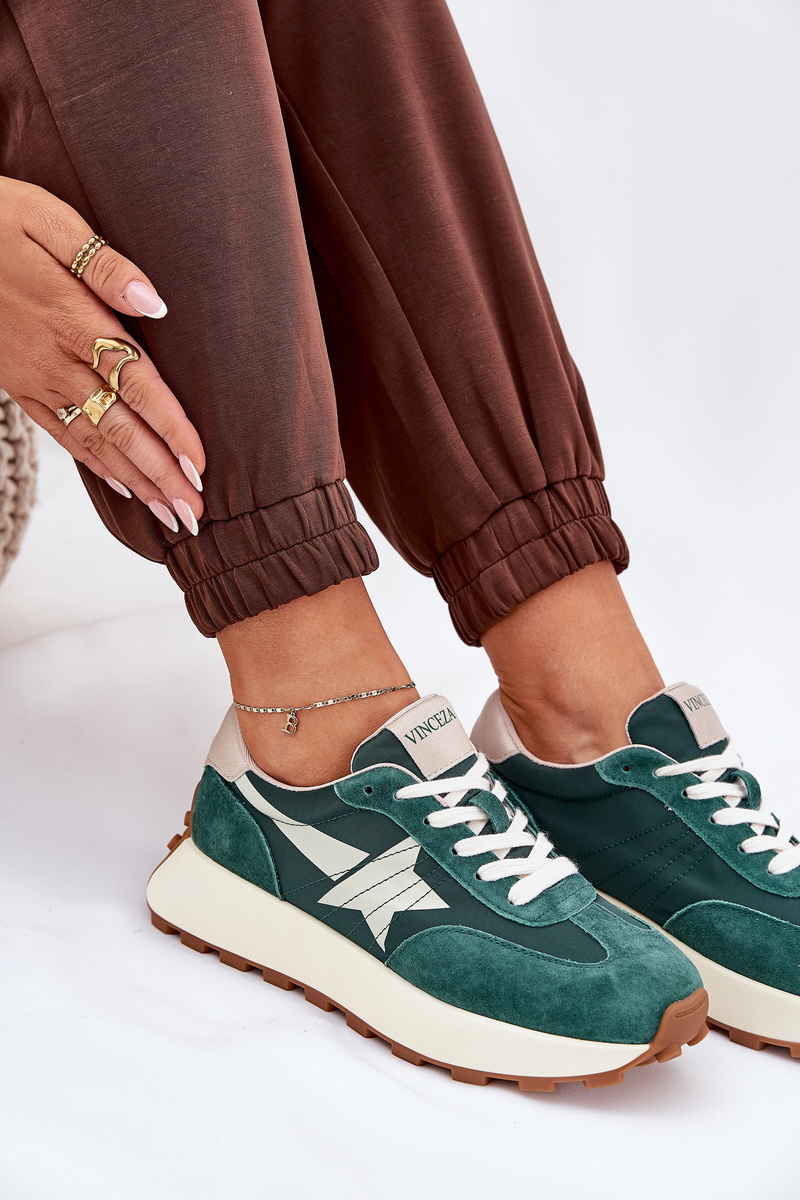 Women's Suede Sports Shoes On Platform 66720 Green Vinceza