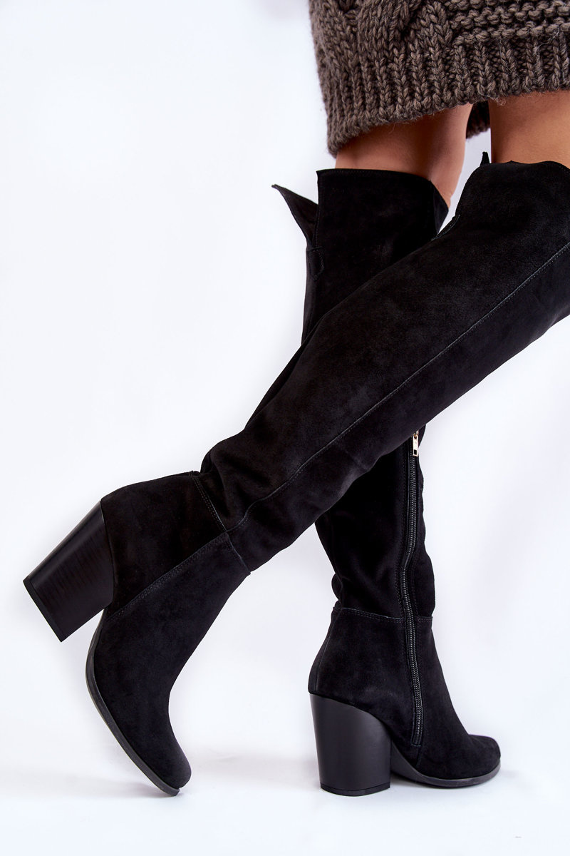Women's Suede Thigh High Boots Lewski 2833 Black