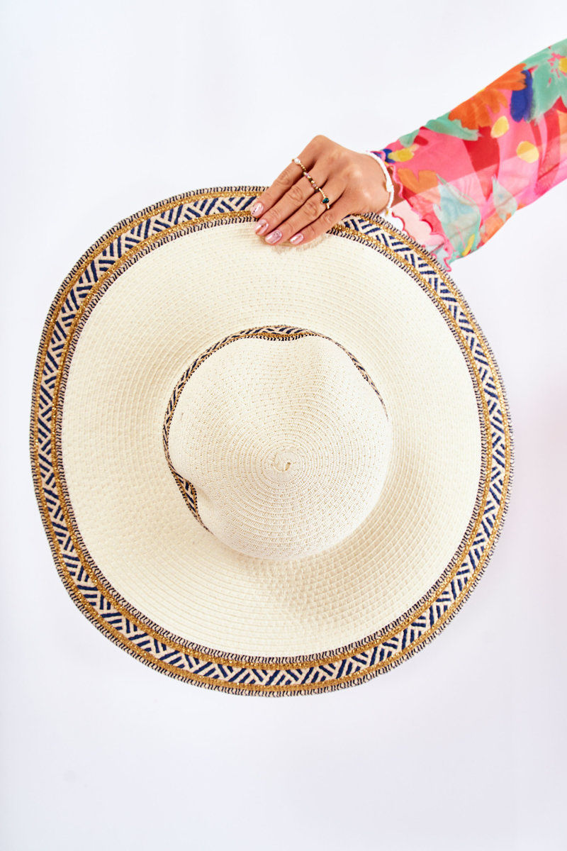 Children's hat with a decorative, thong and two-color stripe. Additionally, it has colorful pendants with fruit attached to the belt. The hat is made of 100% paper. The product has a string, which allows for adjustment. The brim of the hat is wavy. Be sure to check out our entire collection of hats!