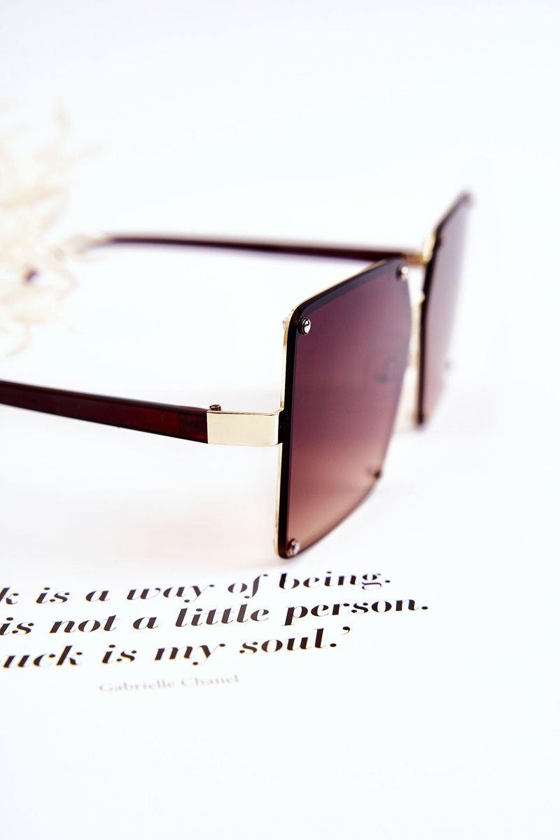 Fashionable sunglasses are great for many situations! Not only during the summer season, but also in the winter season, when the sun's rays reflect off the snow. Square model with a metal bridge. There are decorative elements on the lenses. Plastic temples. Silicone nose pads that can be adjusted. Manufacturer's information: glasses absorb harmful UV rays, category 3.