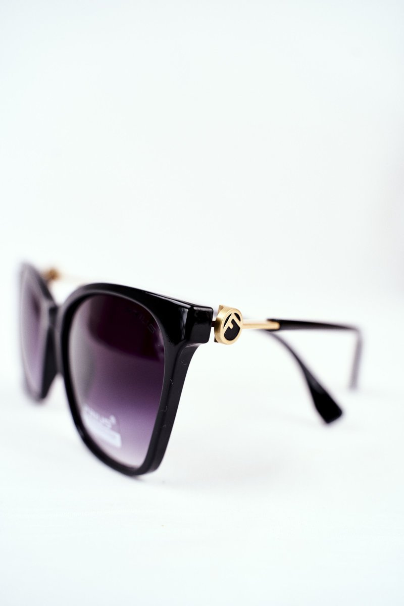 The glasses have lenses with a beautiful gradient of black and fashionable decorations on the temples visible in the pictures.The photos are of our authorship and represent the product being sold.