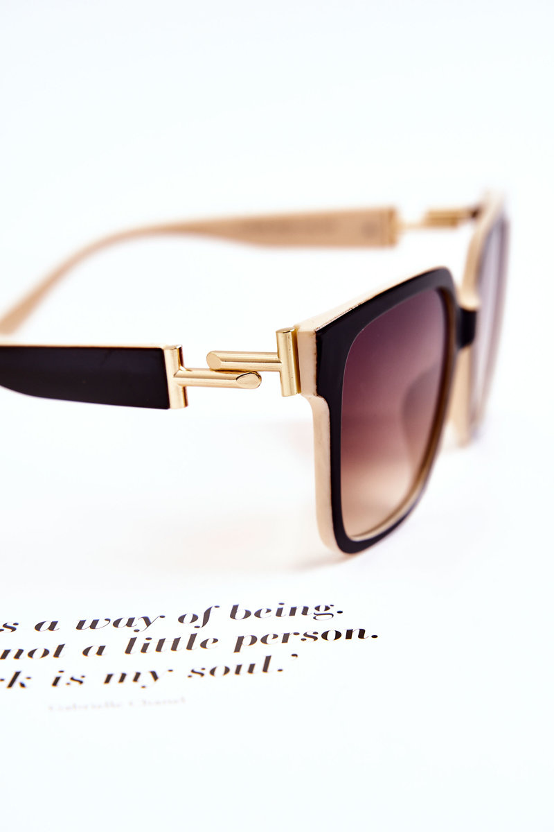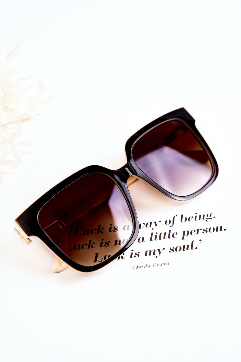 Fashionable sunglasses are great for many situations! Not only during the summer season, but also in the winter season, when the sun's rays reflect off the snow. Square model with thin lens frames. Plastic bridge. Plastic temples with decorative accessories. Manufacturer's information: glasses absorb harmful UV rays, category 2.