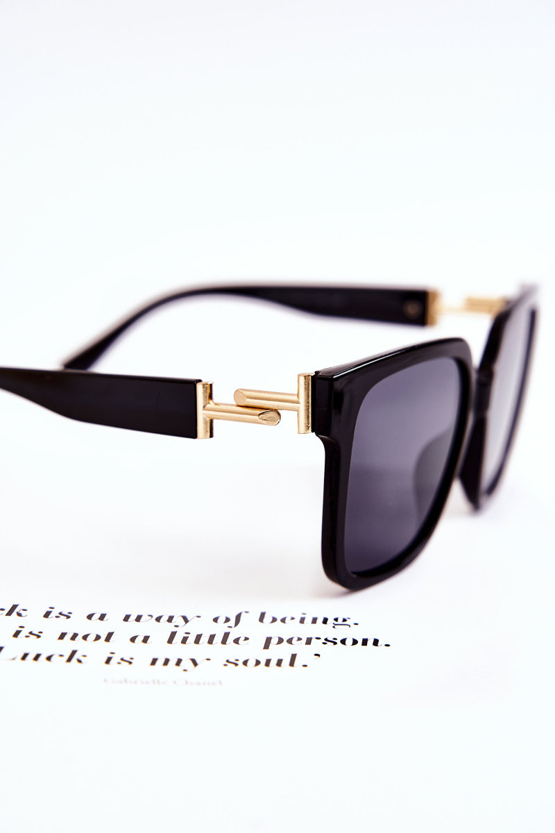 Fashionable sunglasses are great for many situations! Not only during the summer season, but also in the winter season, when the sun's rays reflect off the snow. Square model with thin lens frames. Plastic bridge. Plastic temples with decorative accessories. Manufacturer's information: glasses absorb harmful UV rays, category 3.