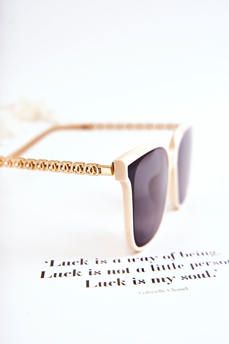 Unique and stylish sunglasses will be perfect for many situations! Not only in the summer season, but also in the winter season, when the sun's rays reflect off the snow. This model was made of plastic. A golden ornament in the form of interwoven circles decorates the temples. Manufacturer's information: glasses absorb harmful UV rays, category 2.