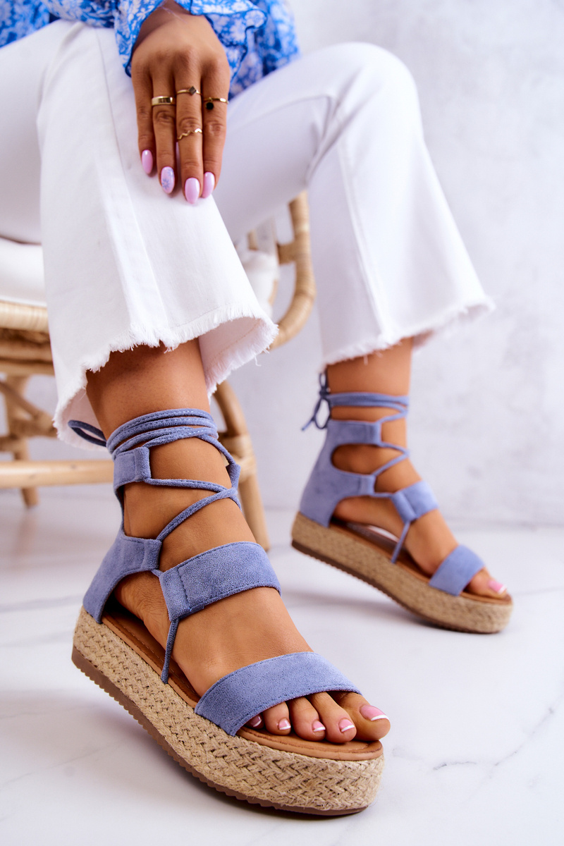 Great, tied espadrille style sandals. They have an ankle upper made of eco suede. They can be properly adjusted to the width of the leg. The platform is decorated with jute braid, while the sole is made of rubber material and is non-slip. A soft insole made of eco leather will ensure comfort during use. Perfect for work, meeting friends or a weekend trip. A model that will make your stylizations look amazing! When choosing a size, please use the size chart.