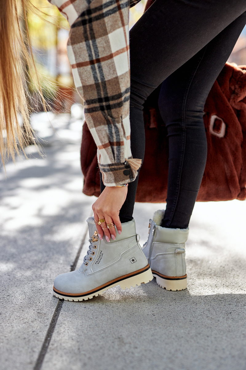 The upcoming season won't be boring! It will feature many great models that will perfectly match the latest trends. Our proposal will brighten up any sad stylization. Timber boots fit not only with jeans and thick sweaters, they are also great for light spring stylizations! Fur insulation will take care of our comfort. Comfortable donning thanks to the zipper sewn on the side. When choosing a size, please use the size chart.