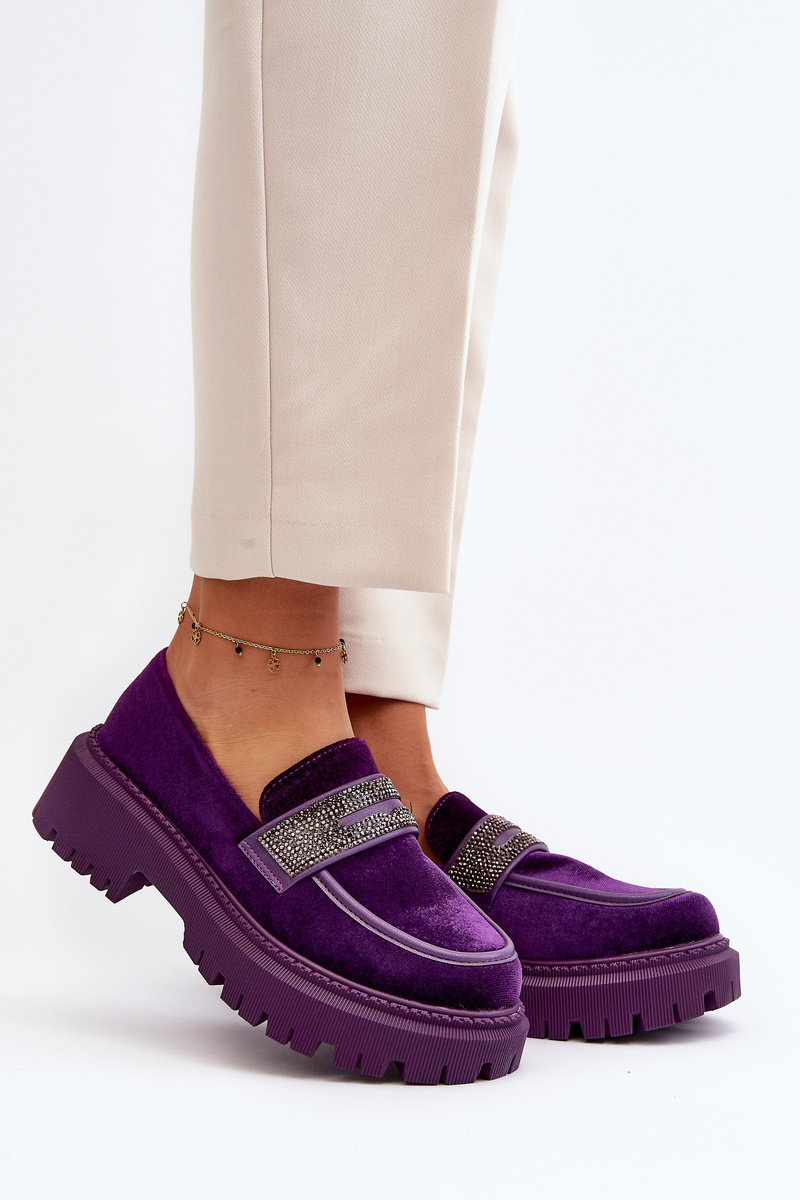 Women's Velvet Moccasins with Decoration Purple Wendreda