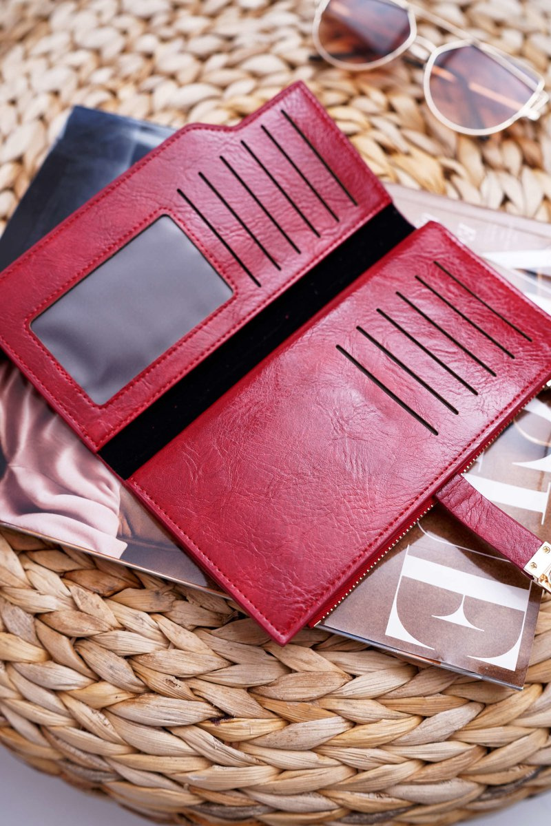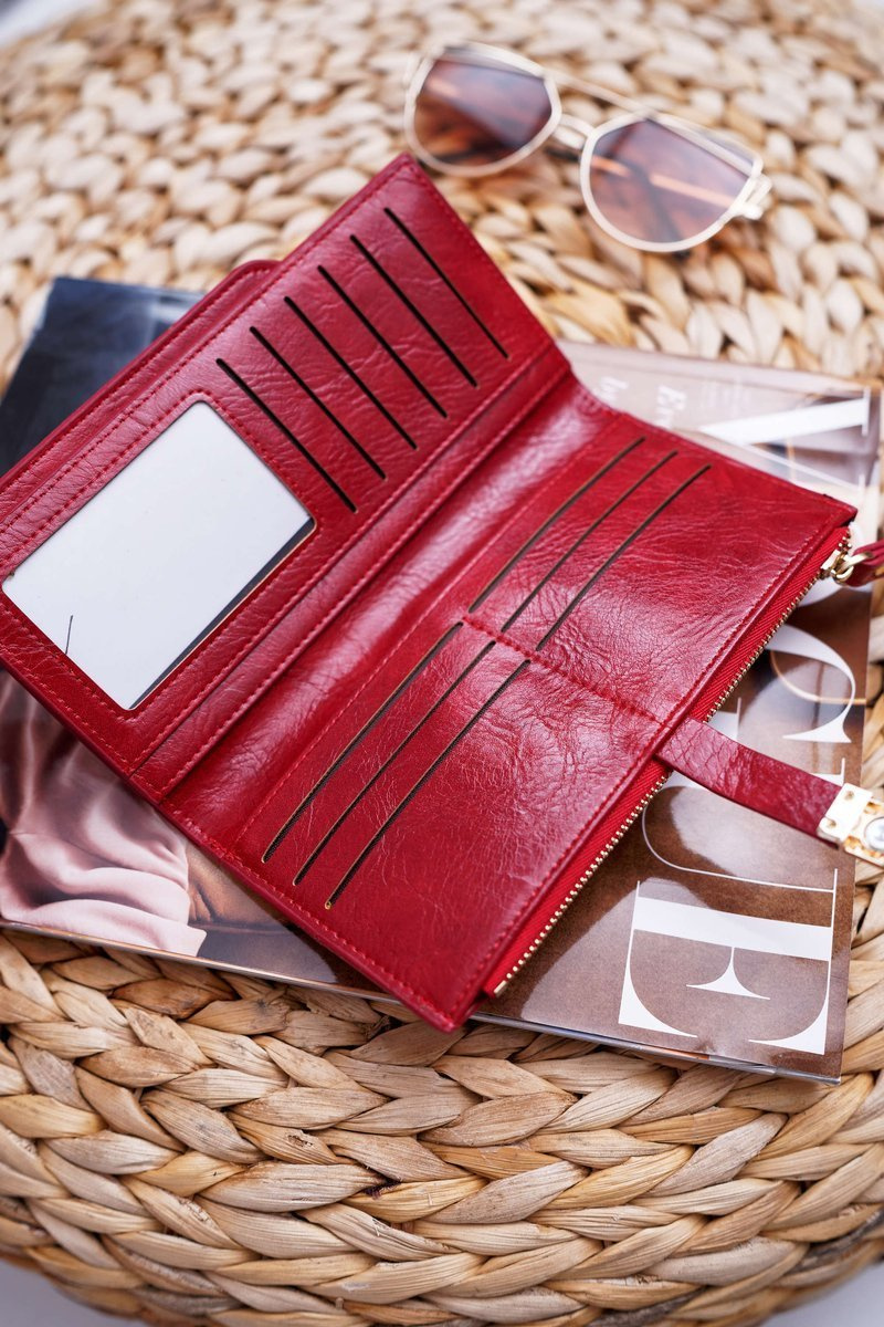 Elegant women's wallet. Classic design made of ecological leather. The wallet has two main pockets, one of which is zippered and the other is magnetic. Inside there is space for 22 cards or other documents and two photo pockets. The second compartment will be perfect for storing small money or a phone.